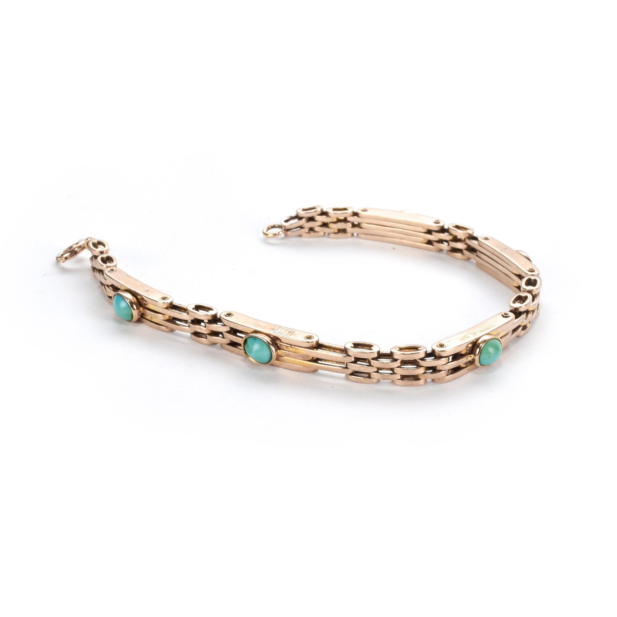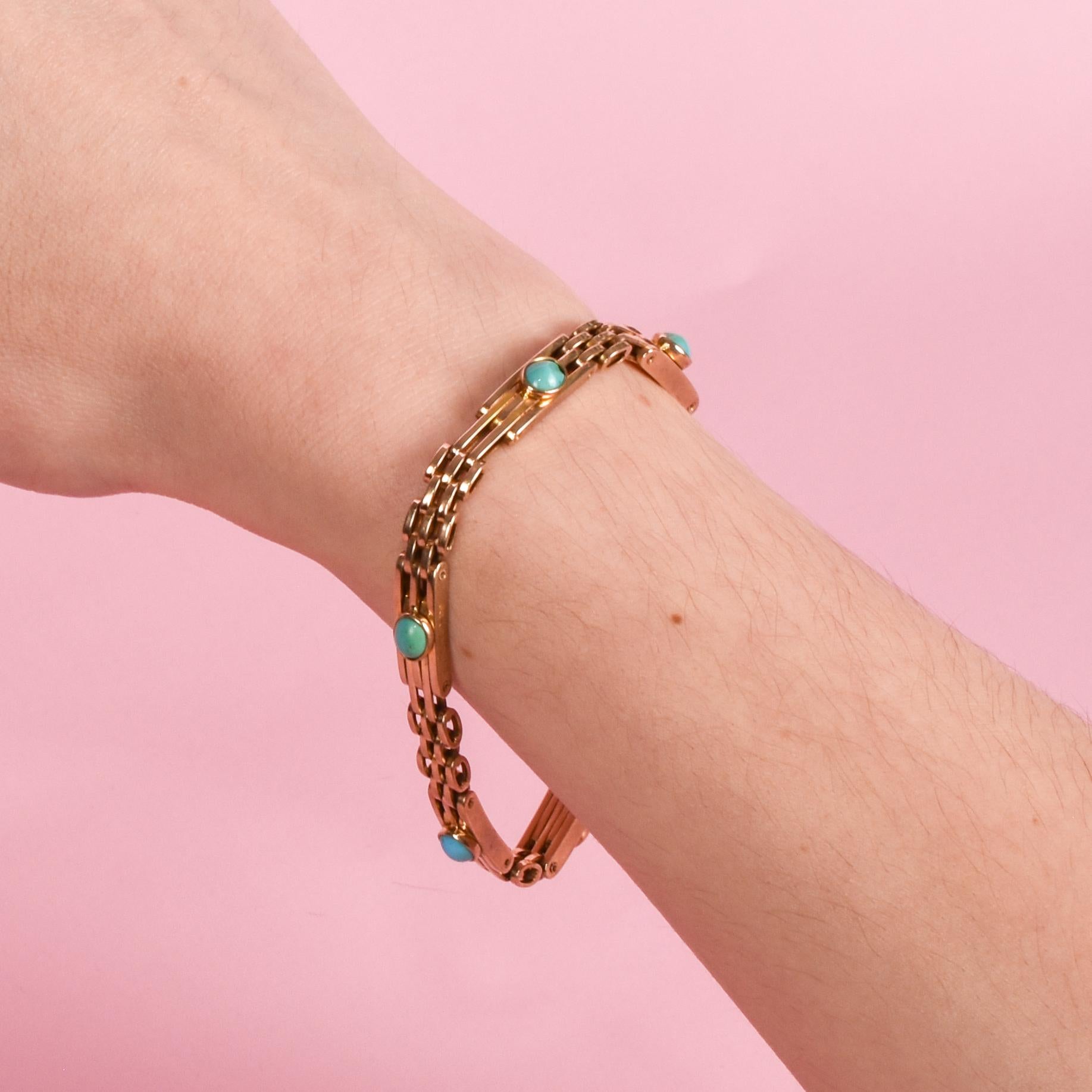 Edwardian Style 9ct Rose Gold Turquoise Gate Bracelet