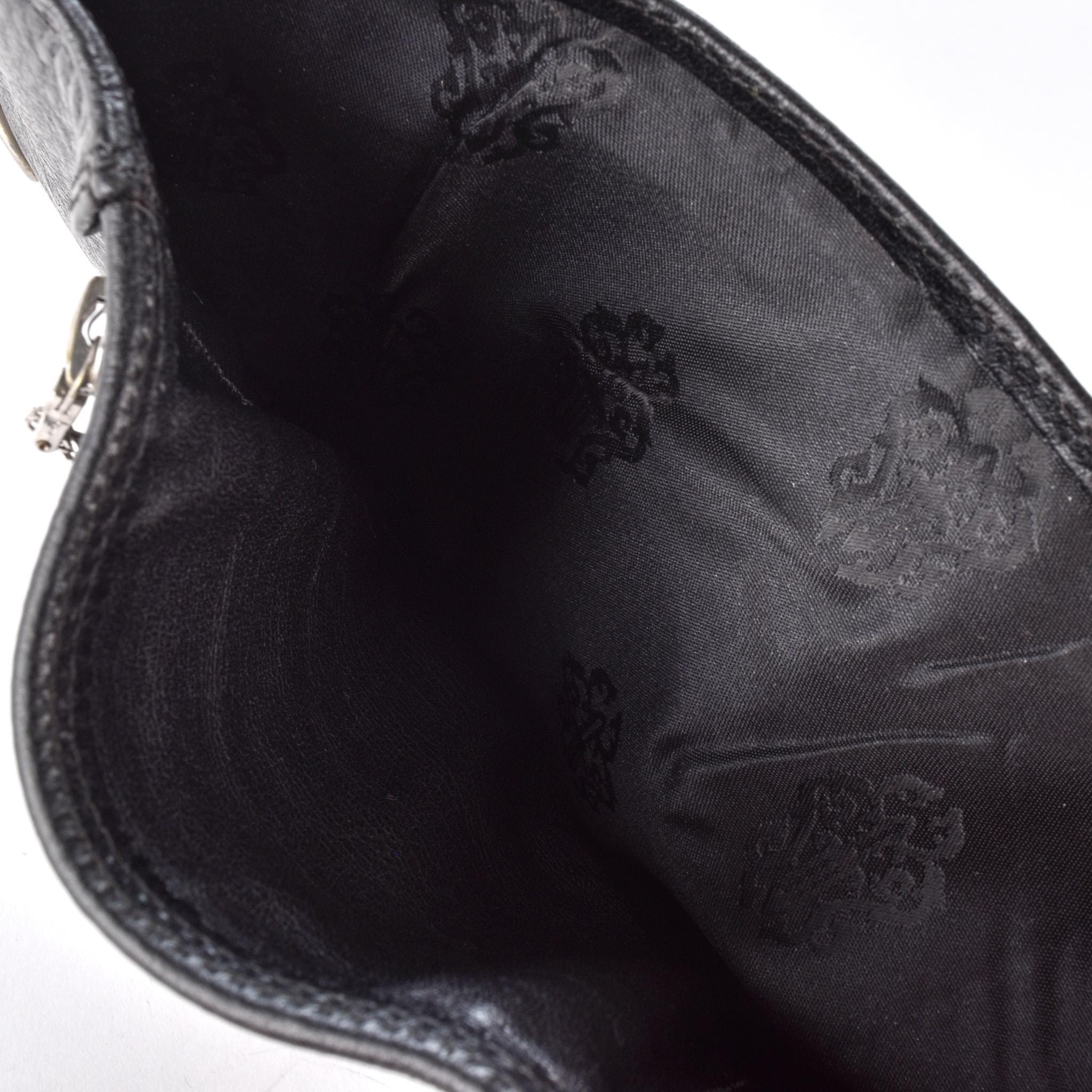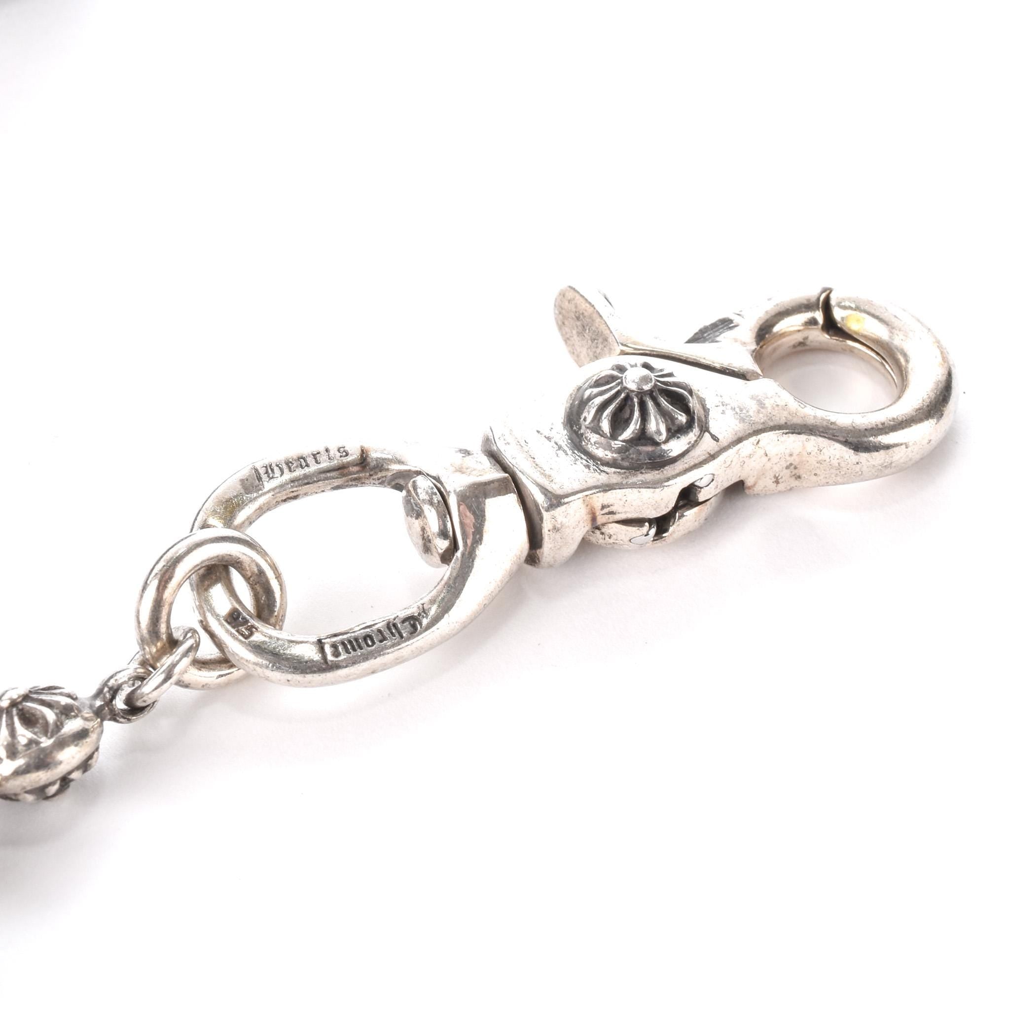Hallmarked "CHROME HEARTS 925" on "CHROME HEARTS 1996" on the top and bottom of the chain clasp. The leather wallet is stamped "CHROME HEARTS" on the inside of the wallet.