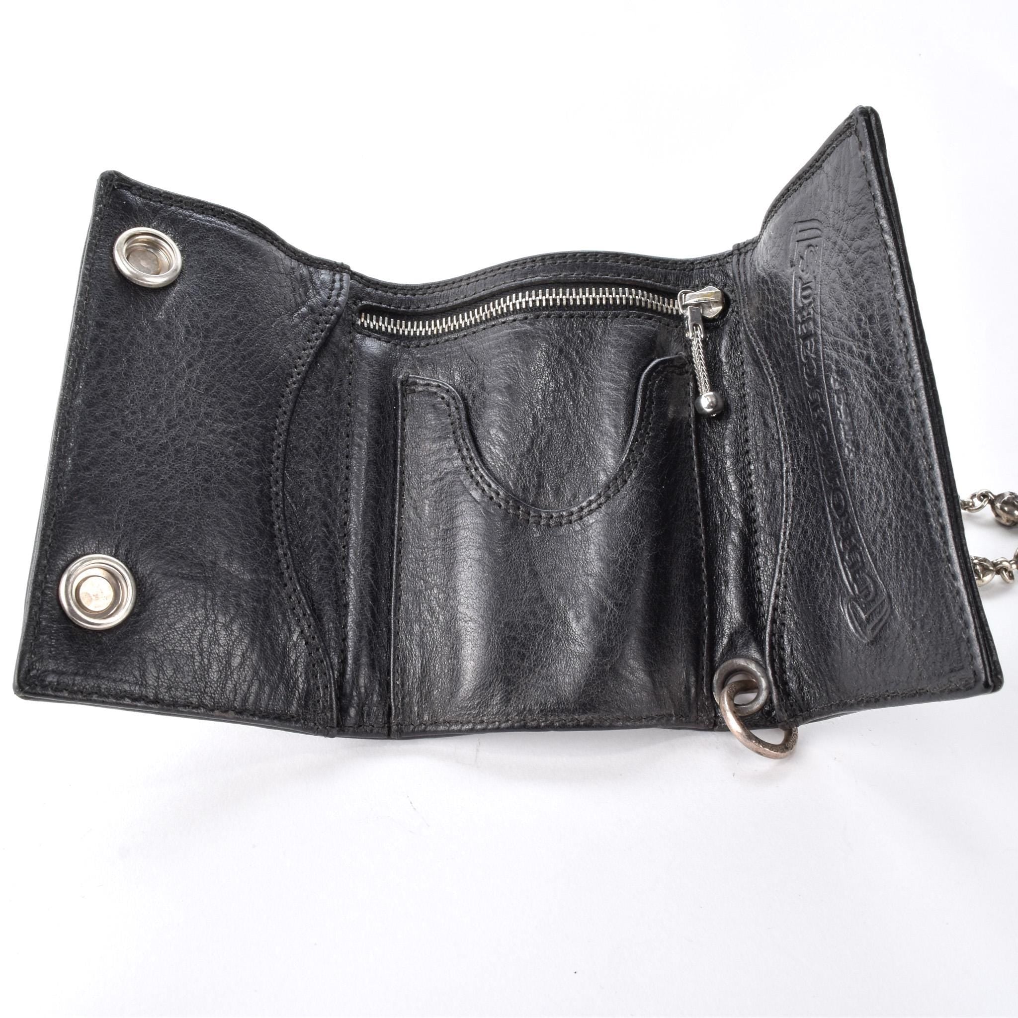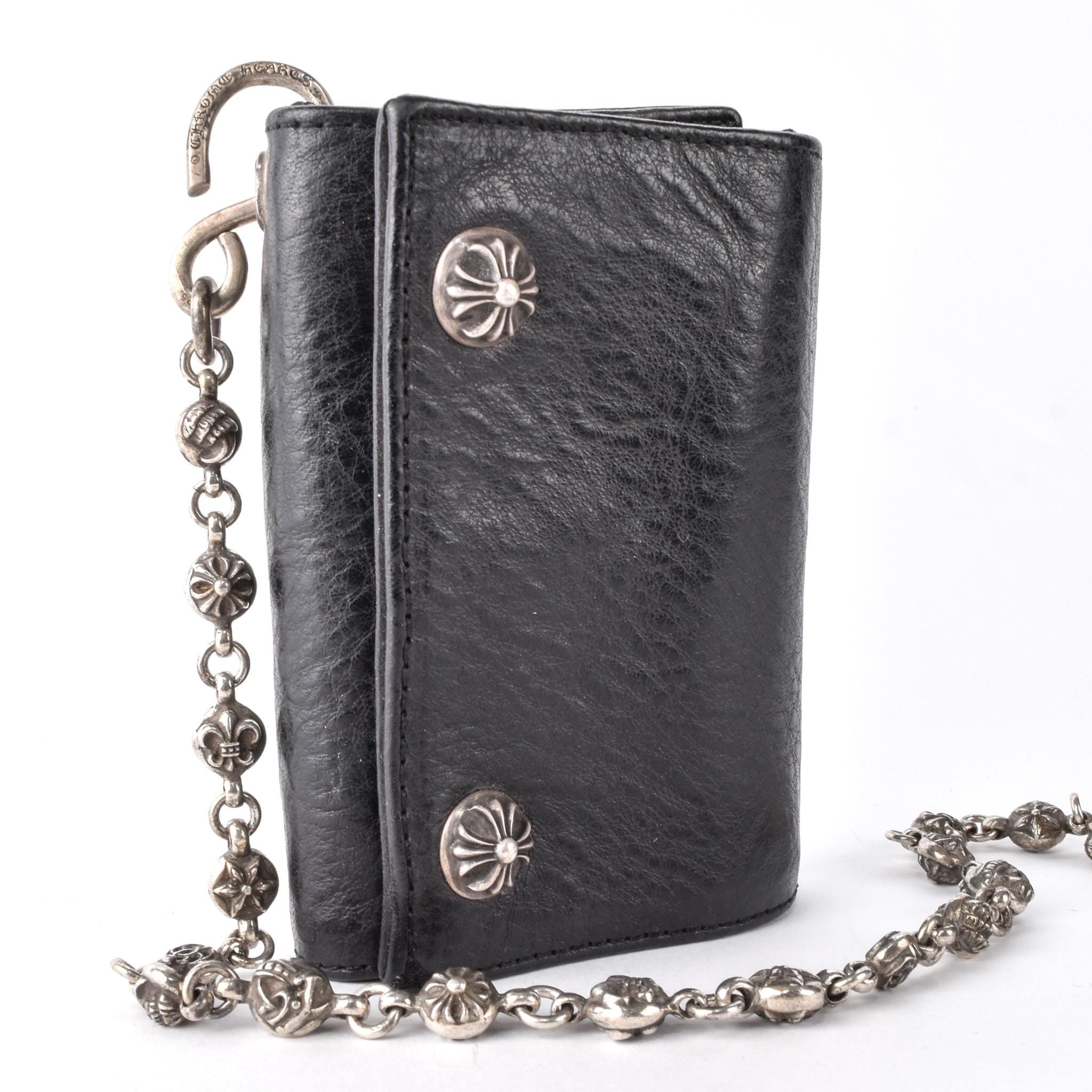 1996 Chrome Hearts Three-Fold Cross Button Wallet with 24" Silver Cross-ball Wallet Chain