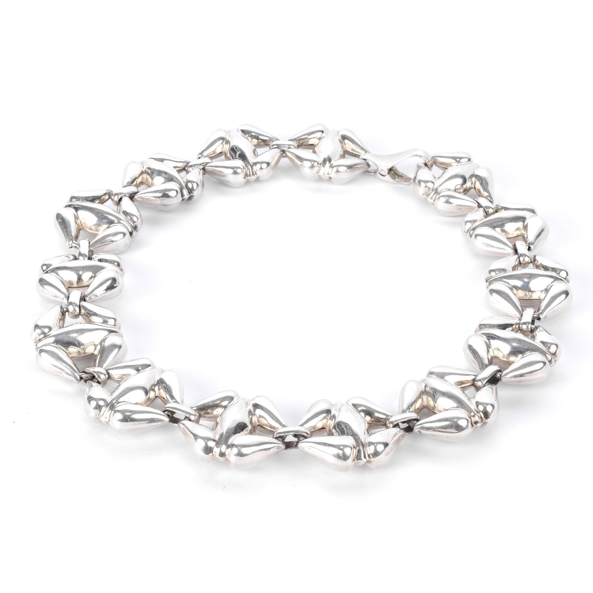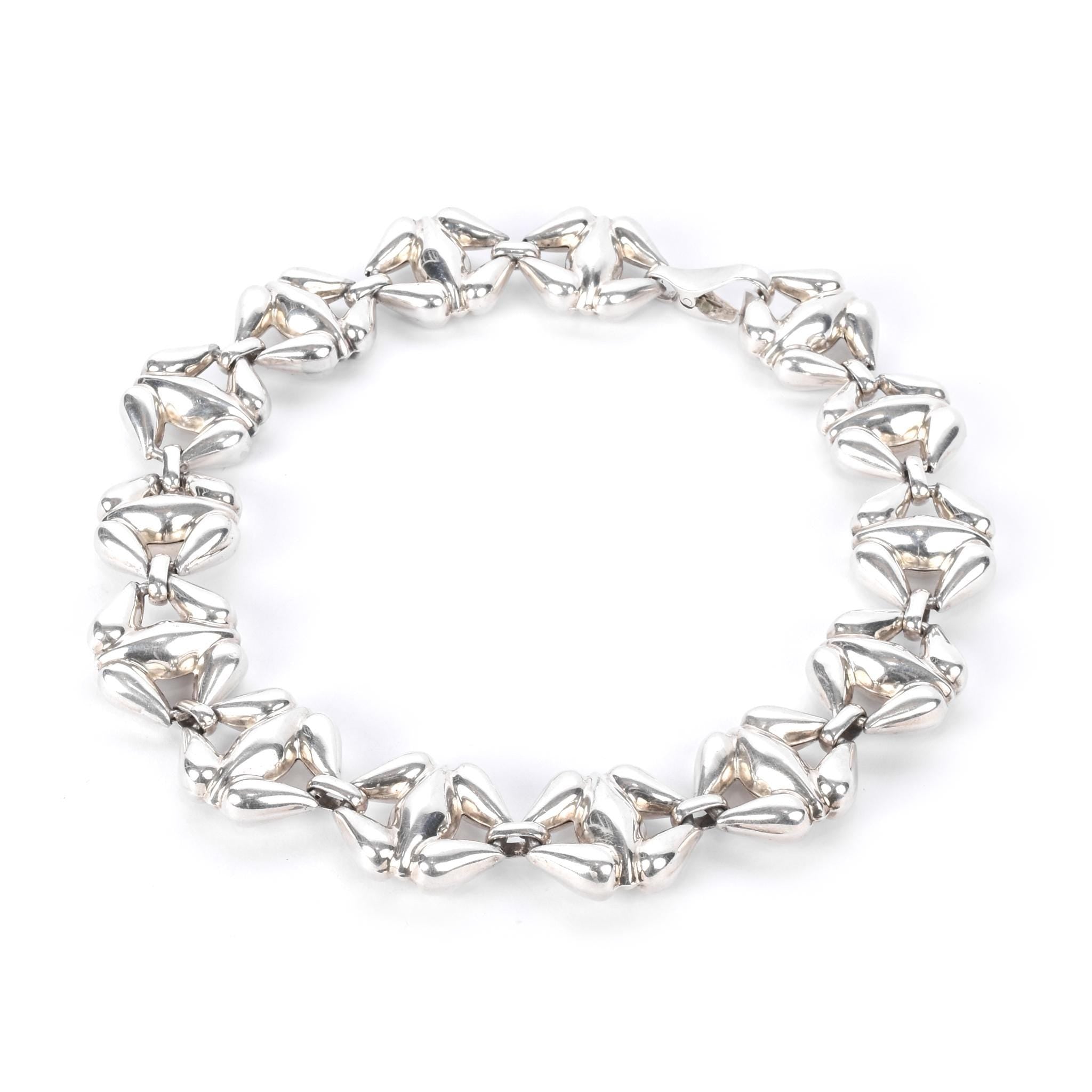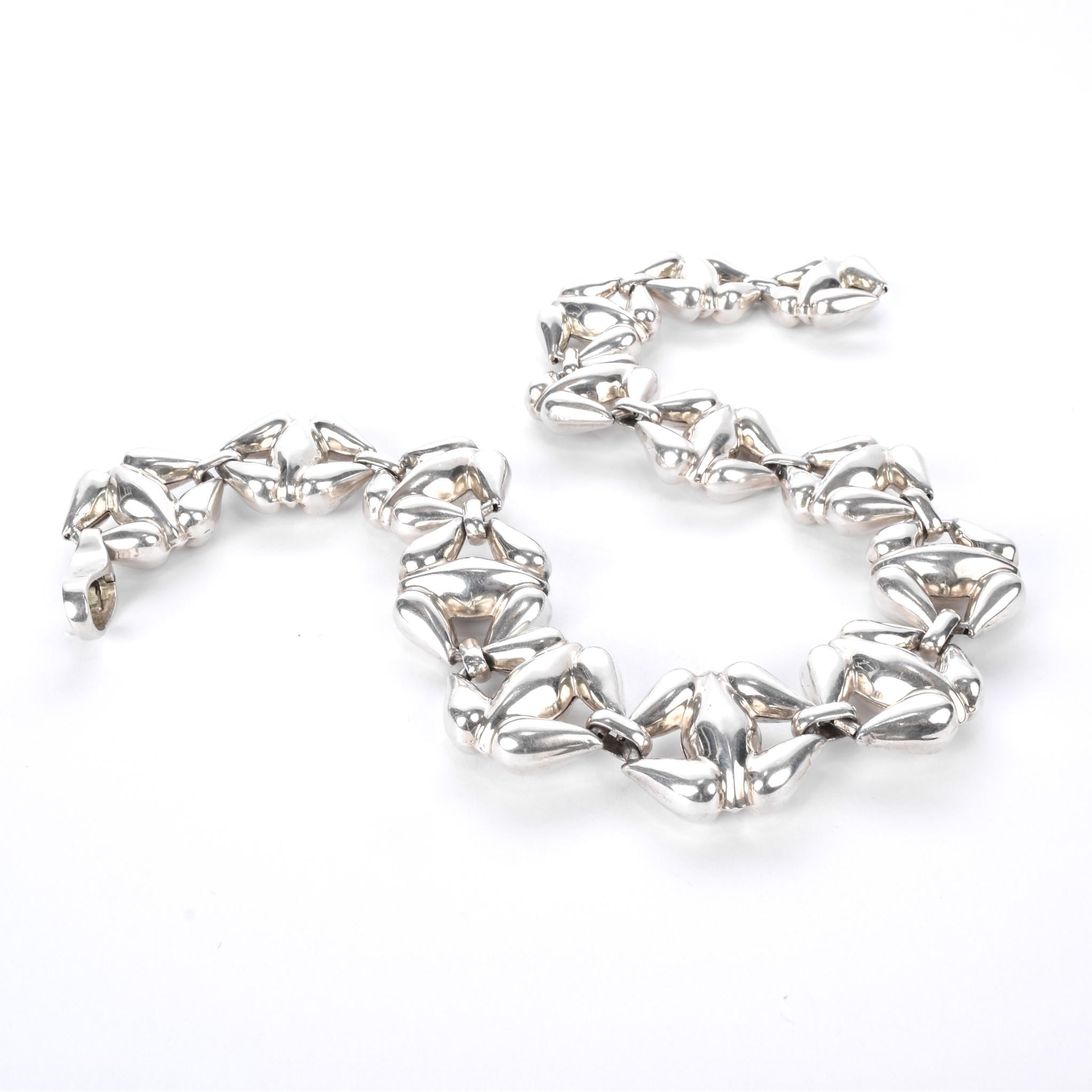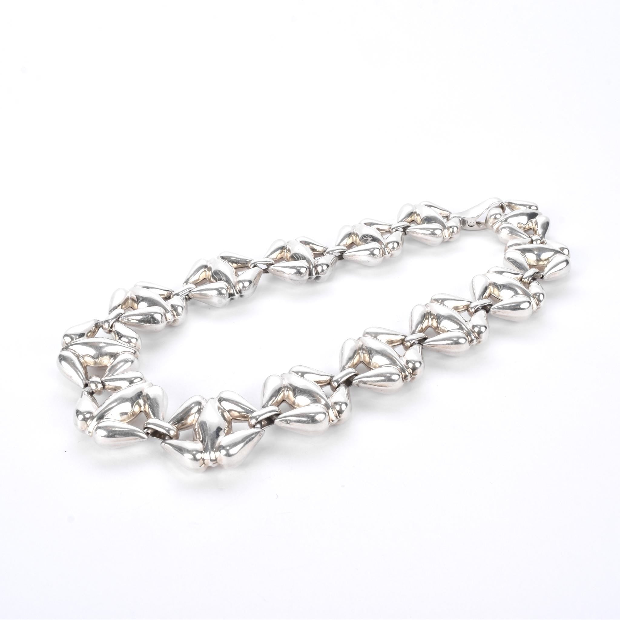 Why we love it: Such an exceptionally cool necklace. Individual lightweight, hollow links are joined to create the appearance of large Xs, crafted from solid sterling silver, which gives it an incredible color and shine. A one-of-a-kind piece.