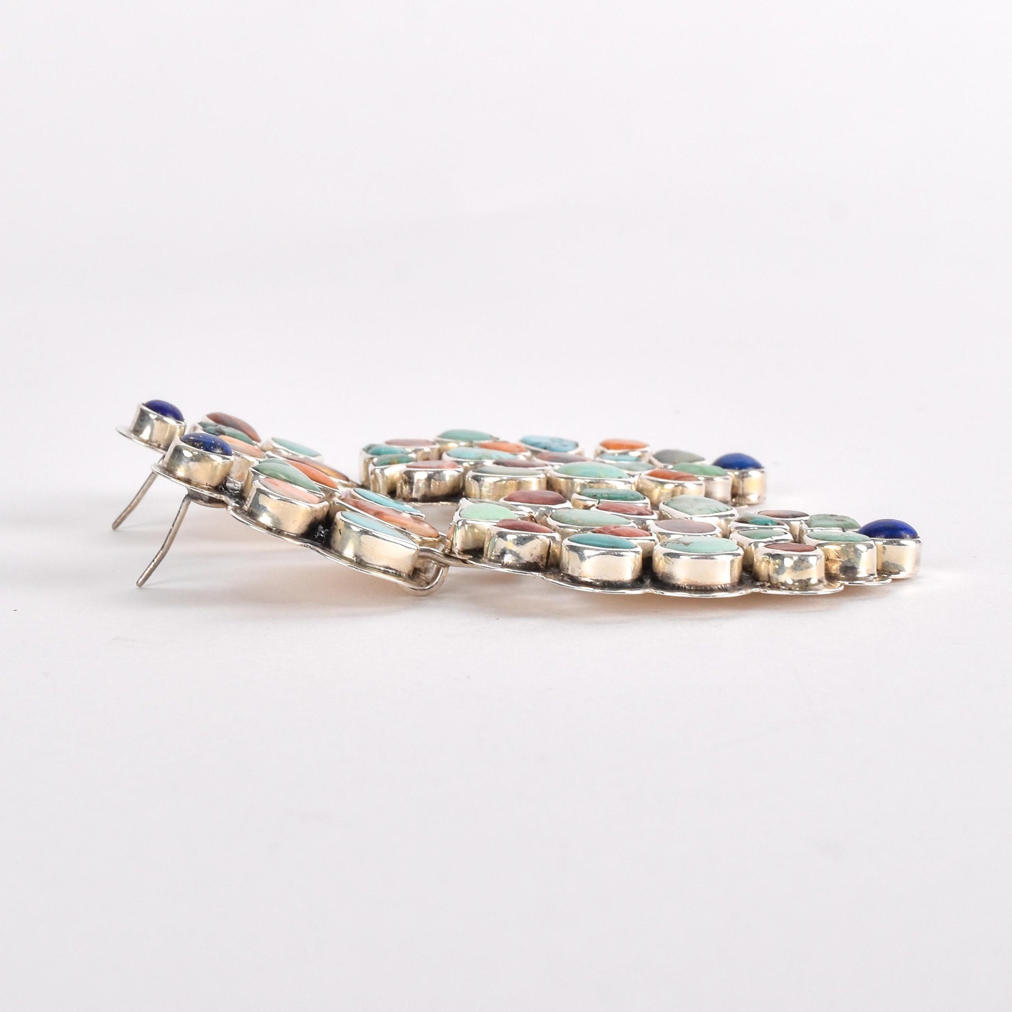 1970s Oscar Betz Multi-Stone Silver Chandelier Earrings
