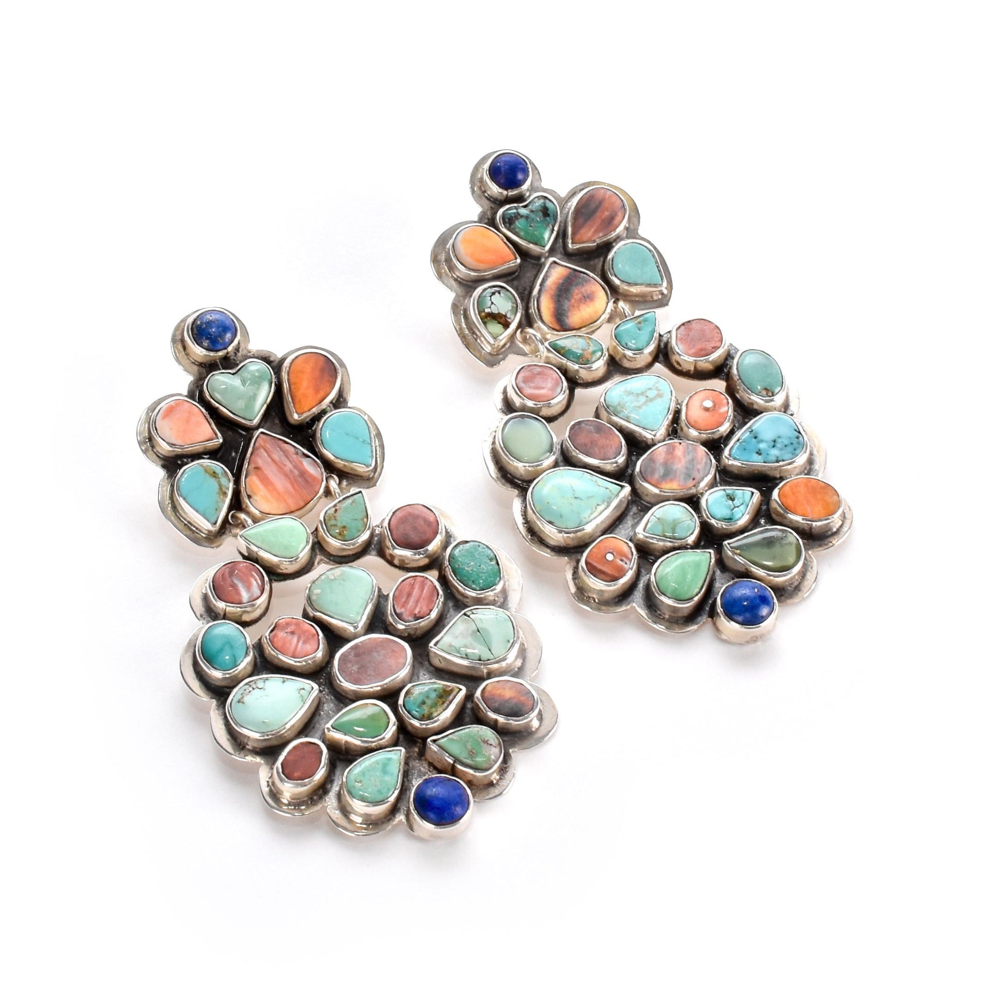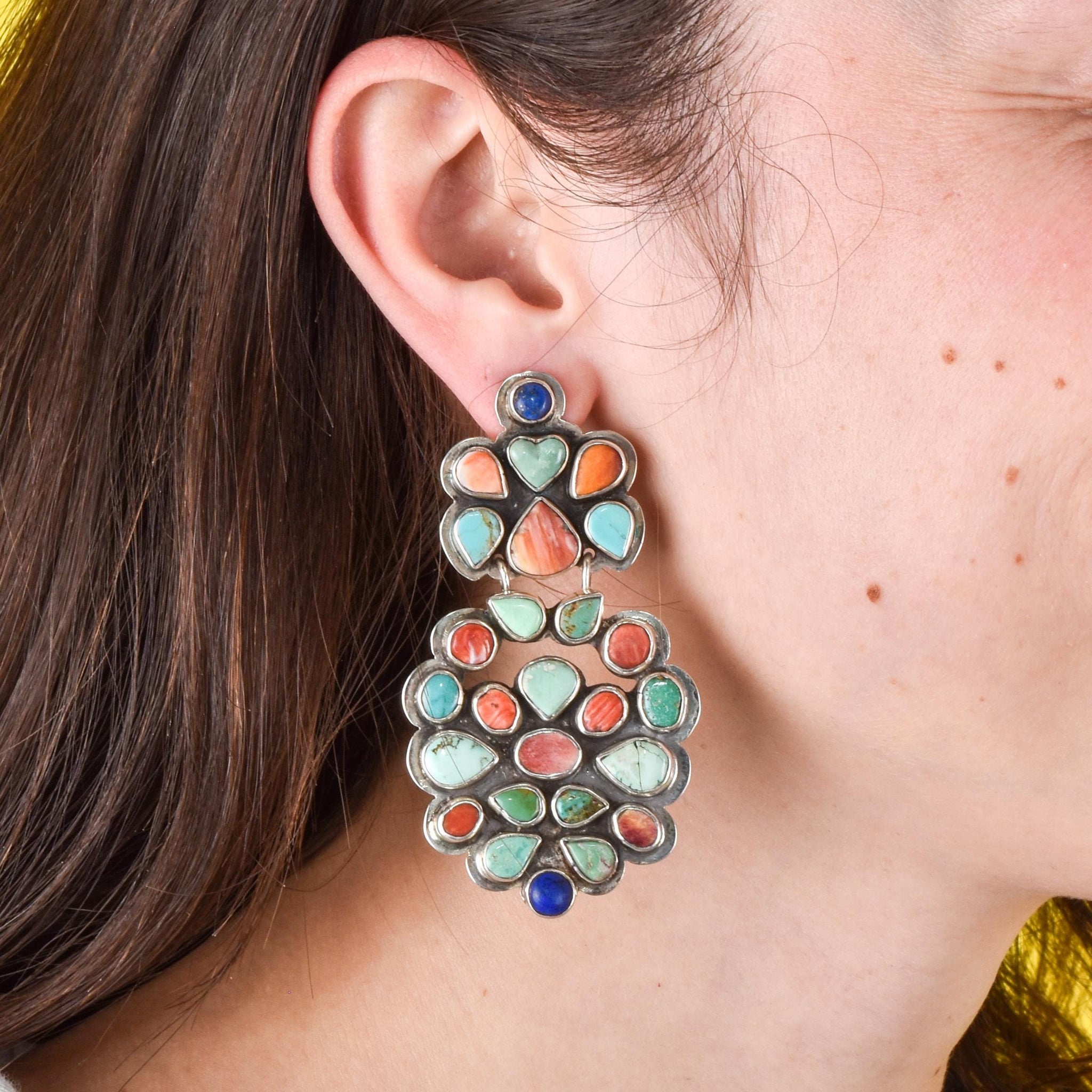 Why we love it: These are a stunning piece of vintage construction. Oscar Betz, an artist from Santa Fe, New Mexico, known for his unique, one-of-a-kind jewelry, gained prominence in the 1970s and 1980s for his "featherweight" Southwestern chandelier earrings, which, despite their large size, are designed to be lightweight and well-balanced. Sought after by collectors, these earrings feature beautiful lapis lazuli, spiny oyster, and bright turquoise. A truly one-of-a-kind piece.