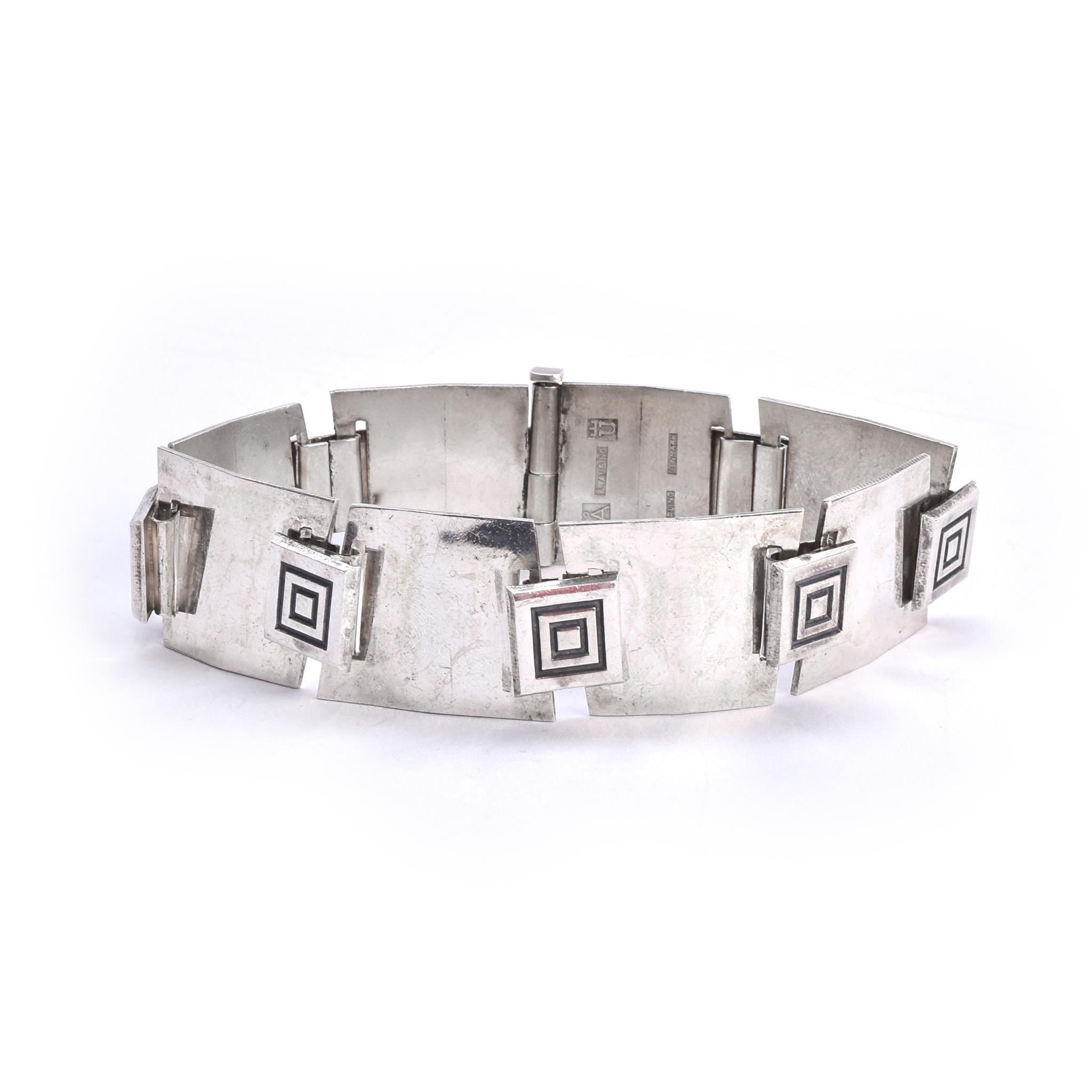 Danish Modernist Sterling Silver Geometric Link Bracelet