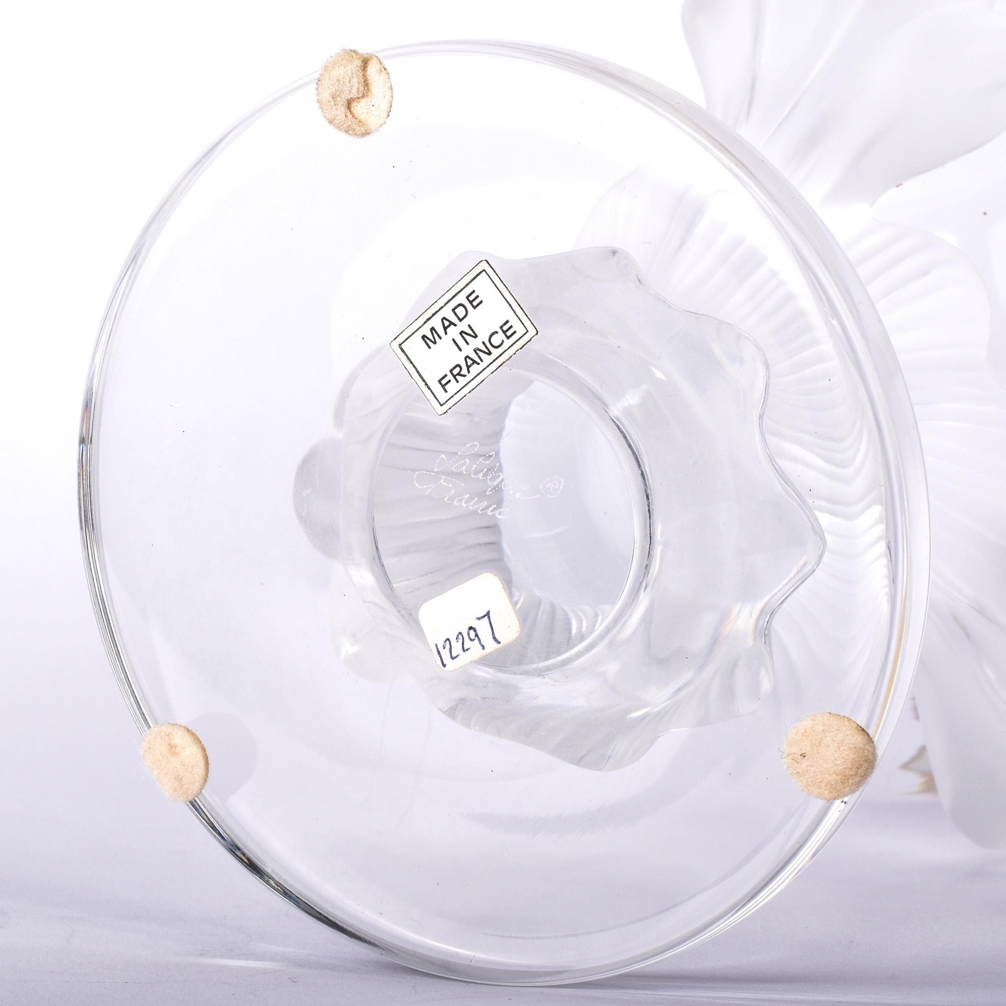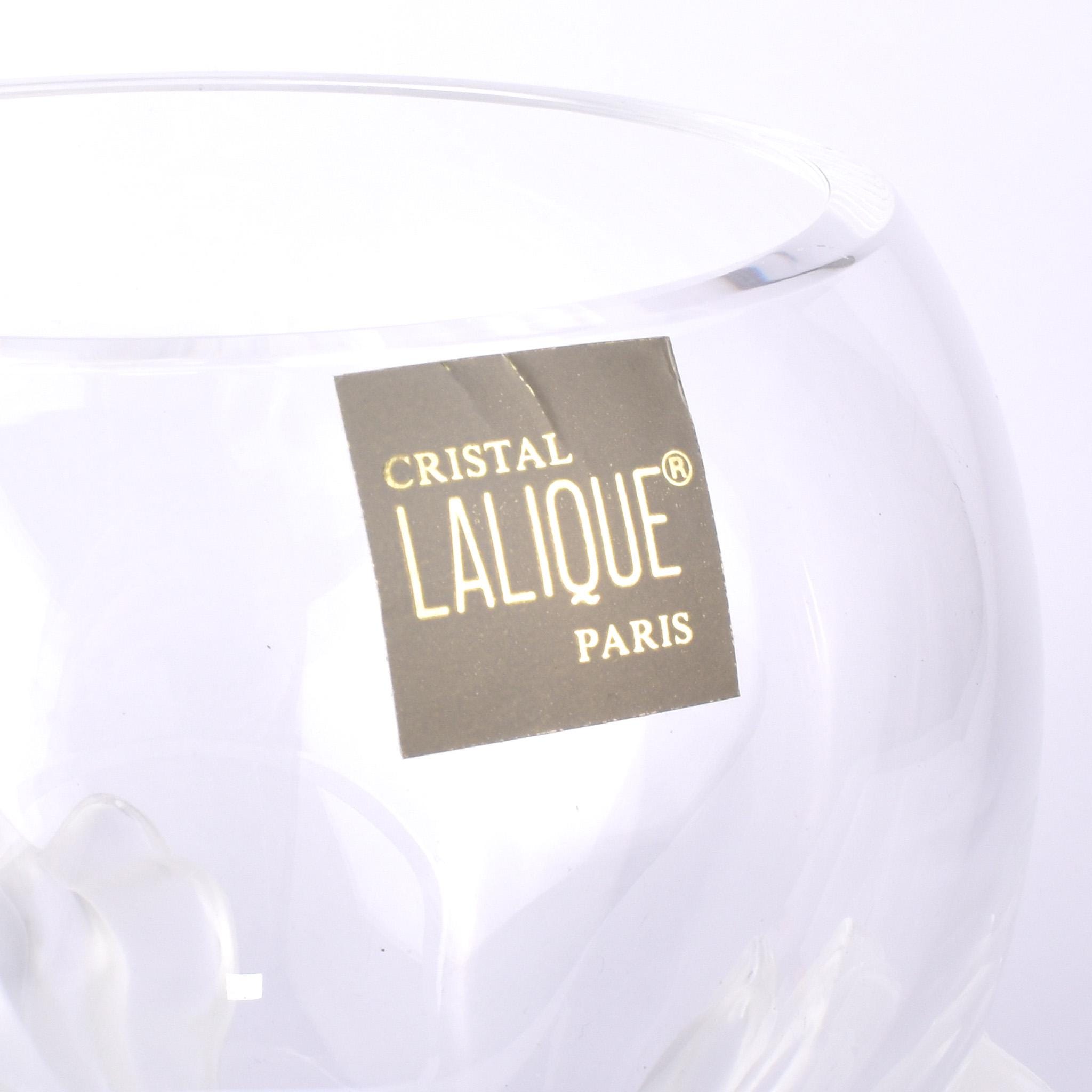 "LALIQUE ® PARIS" sticker on the bowl. "MADE IN FRANCE" and "11297" stickers on the bottom of the base. Signed "LALIQUE ® FRANCE" on the bottom of the base.