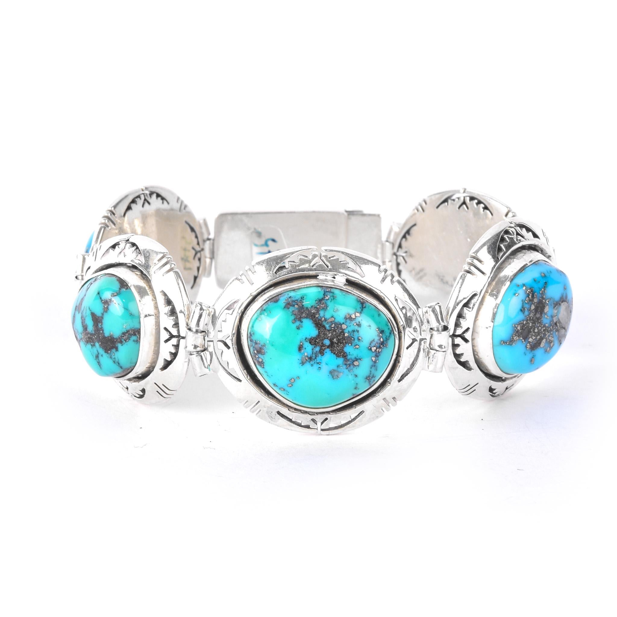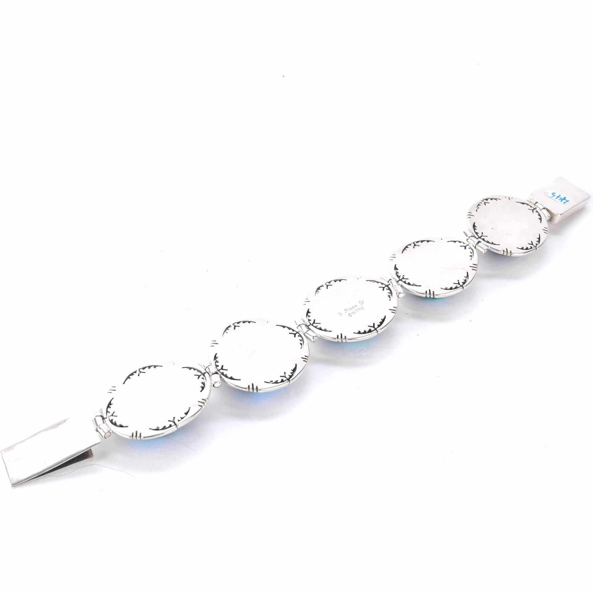 Signed Ben Piaso Jr Navajo Sterling Silver & Turquoise Link Bracelet