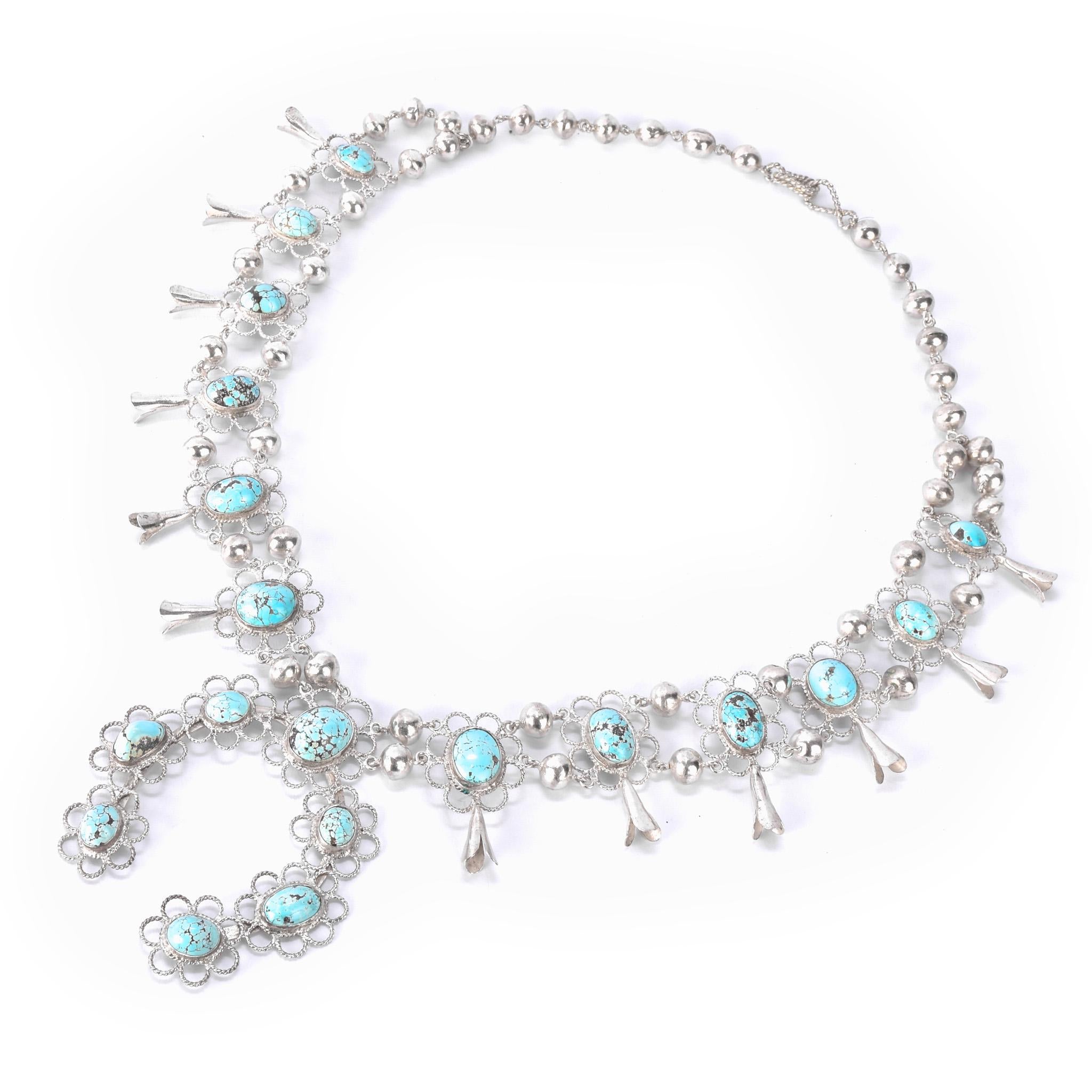 Lightweight Sterling Silver and Turquoise Squash Blossom