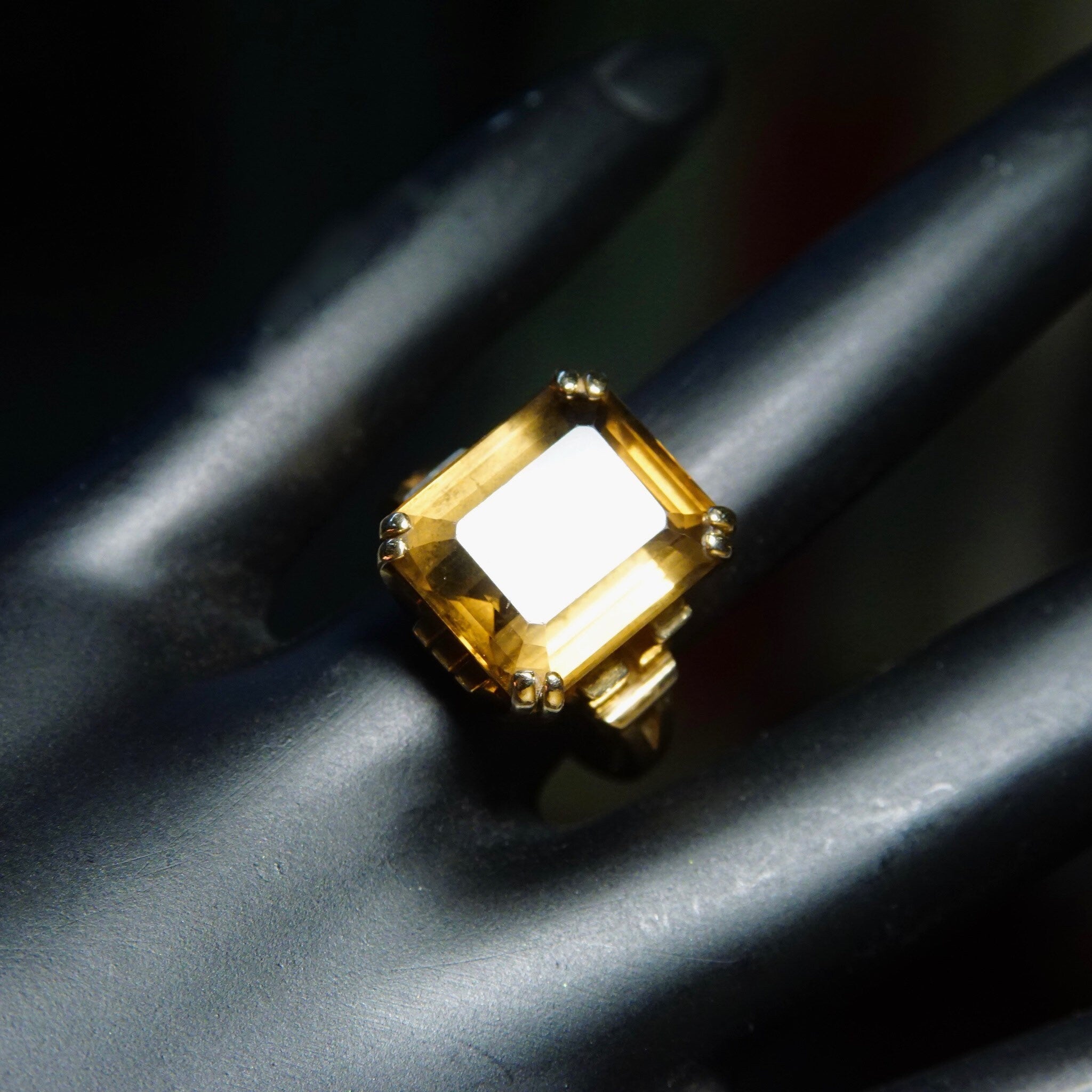 Vintage 10k Gold Smoky Quartz Cocktail Ring, Prong-Set Champagne Gemstone, Emerald Cut, Yellow Gold Setting & Band, Size 6 1/4 US