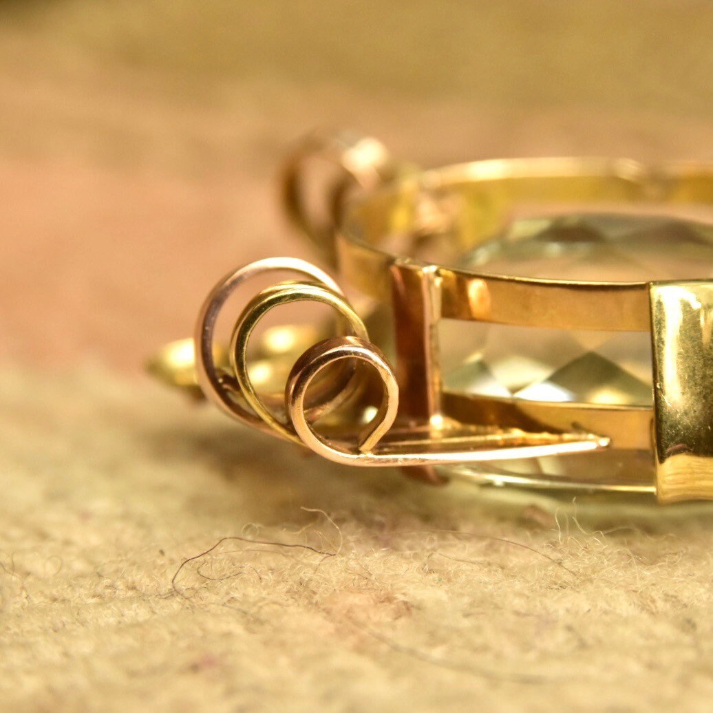 Vintage 18K Yellow & Rose Gold Blue Topaz Pendant, Large Faceted Oval Gemstone, Two-Tone Gold Ribbon Setting, Mid-Century, Art Deco Style
