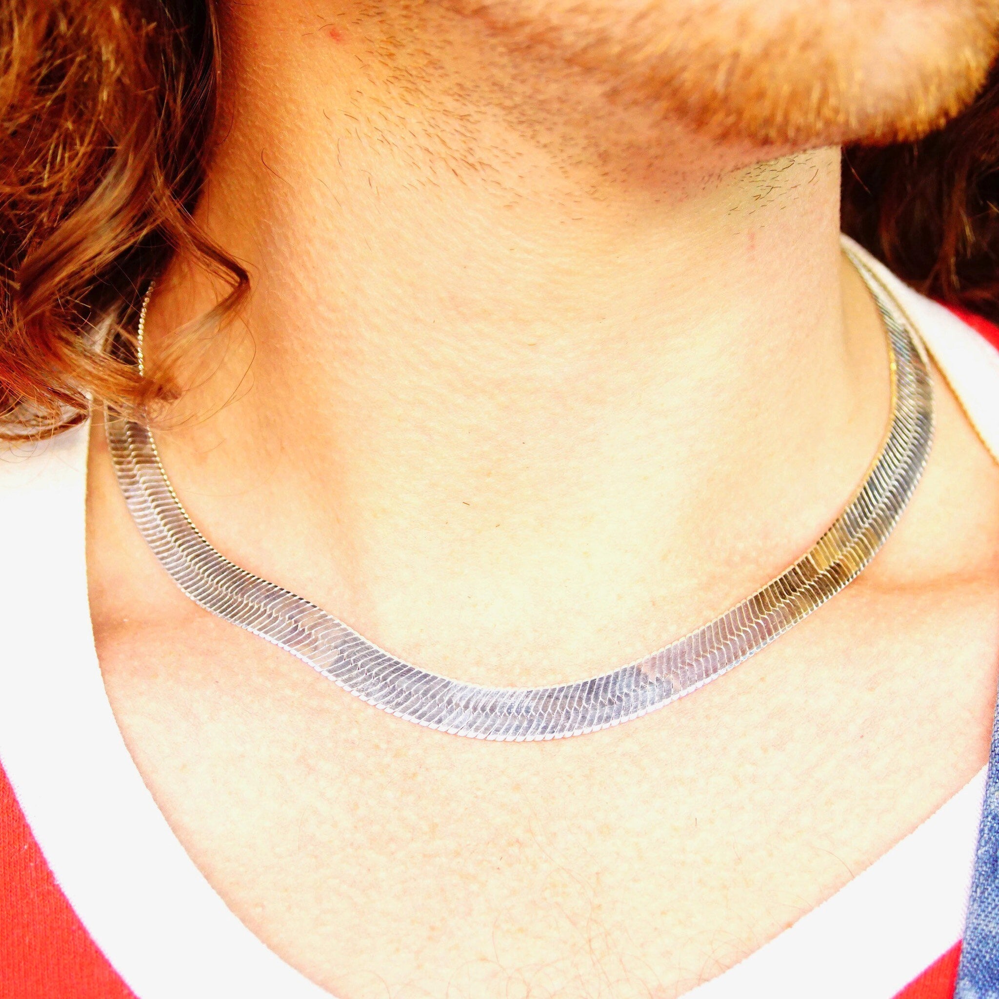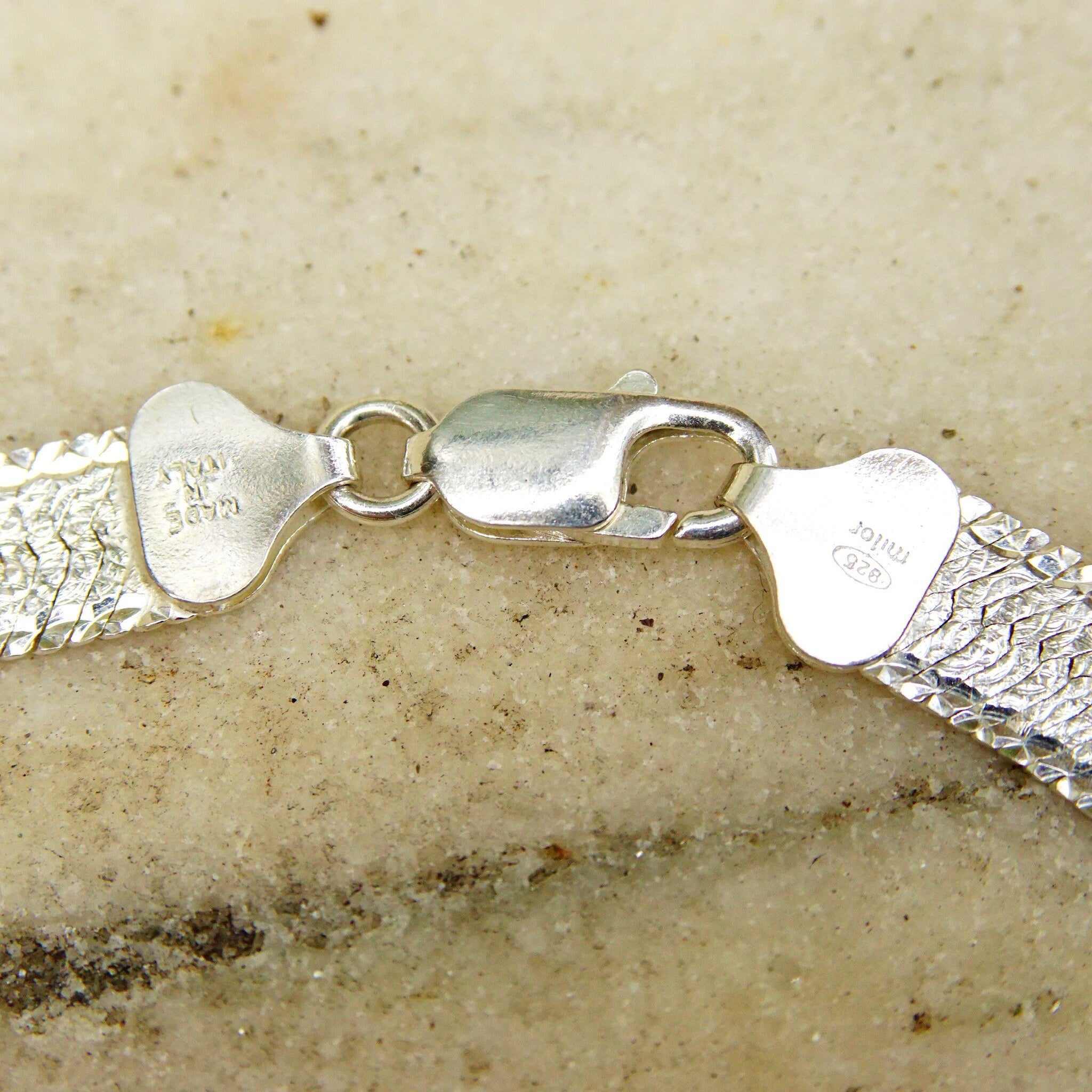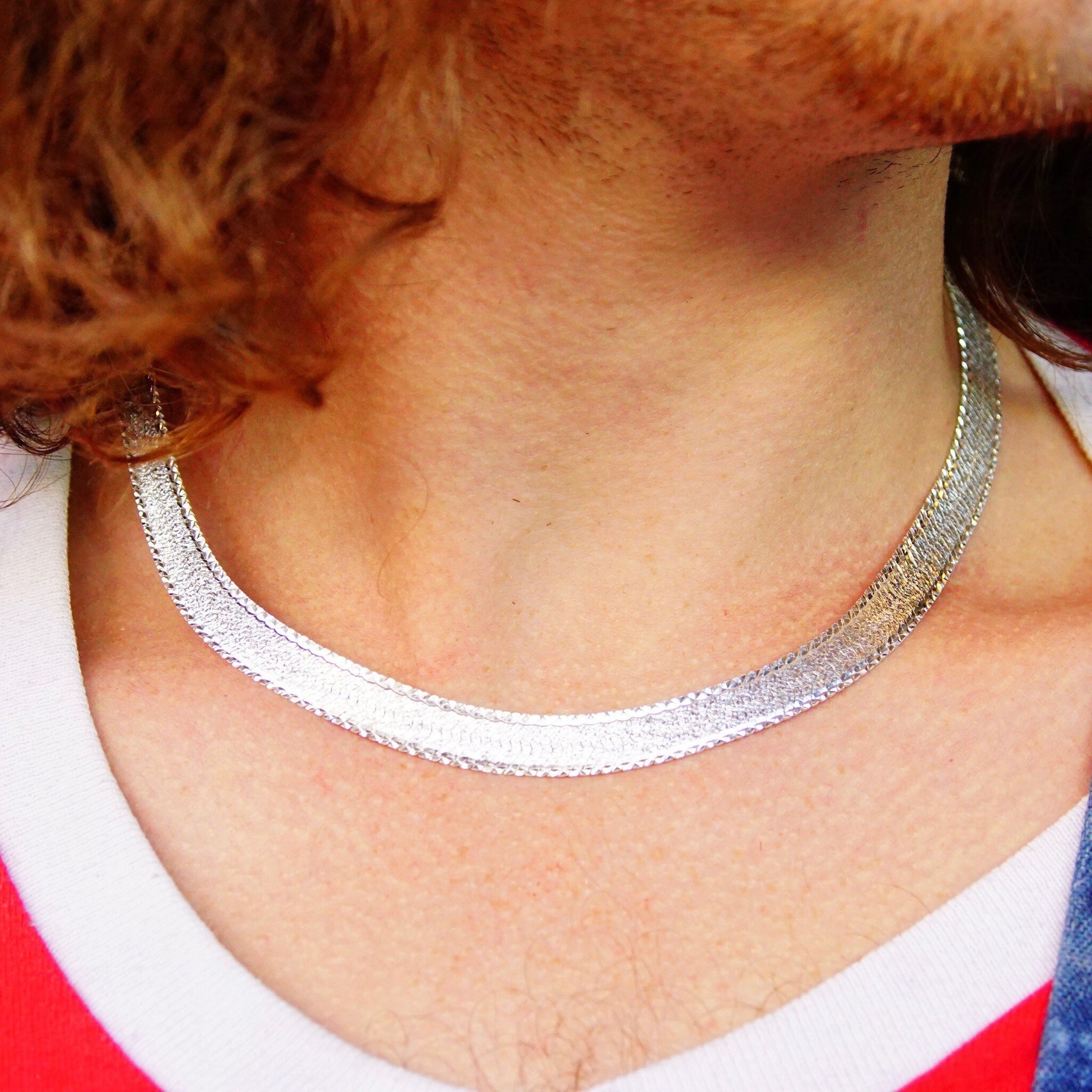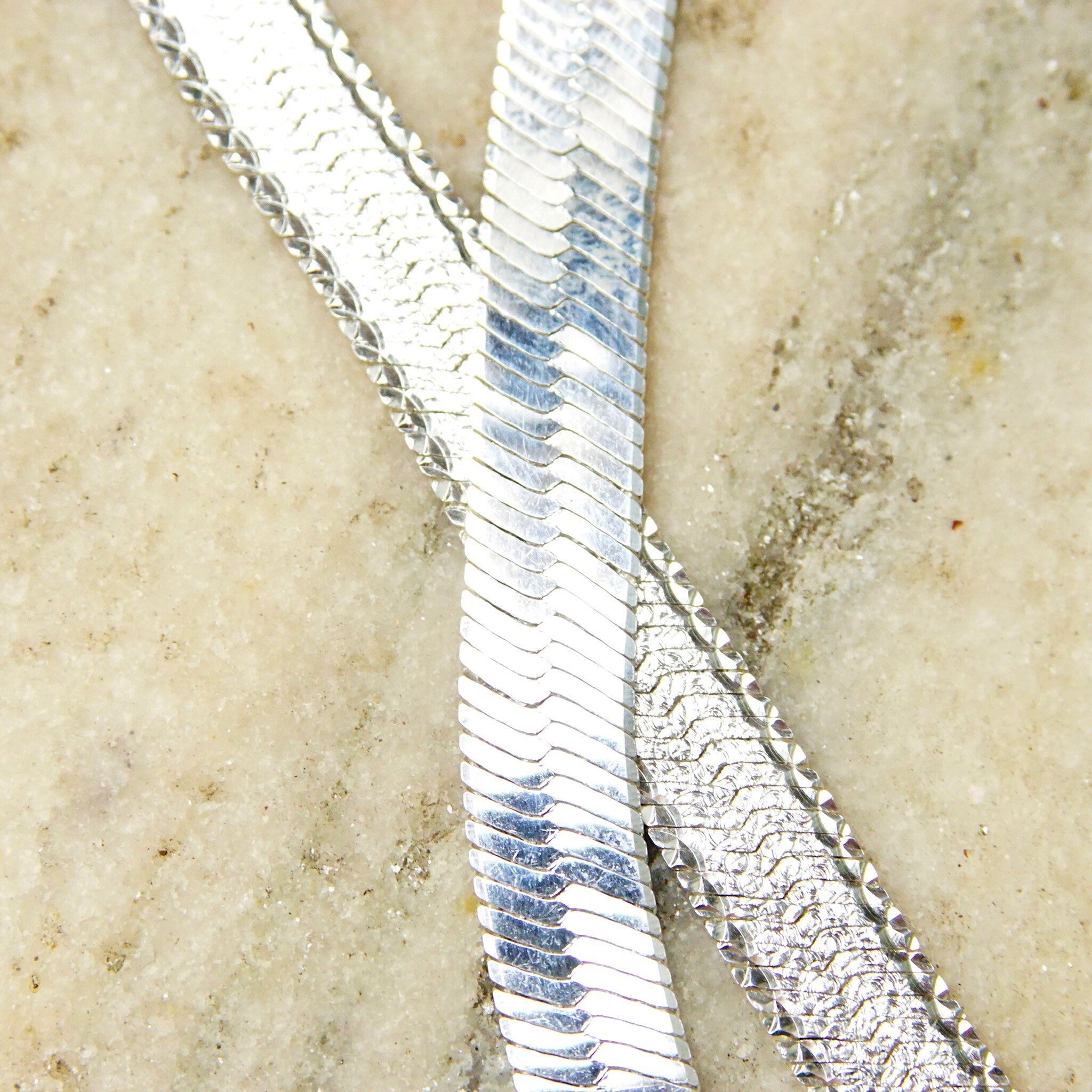 Vintage Milor 925 Italy Herringbone Collar Necklace, 10mm Flat Sterling Silver Herringbone Chain, Hammered Texture On Reverse Side, 18 Long