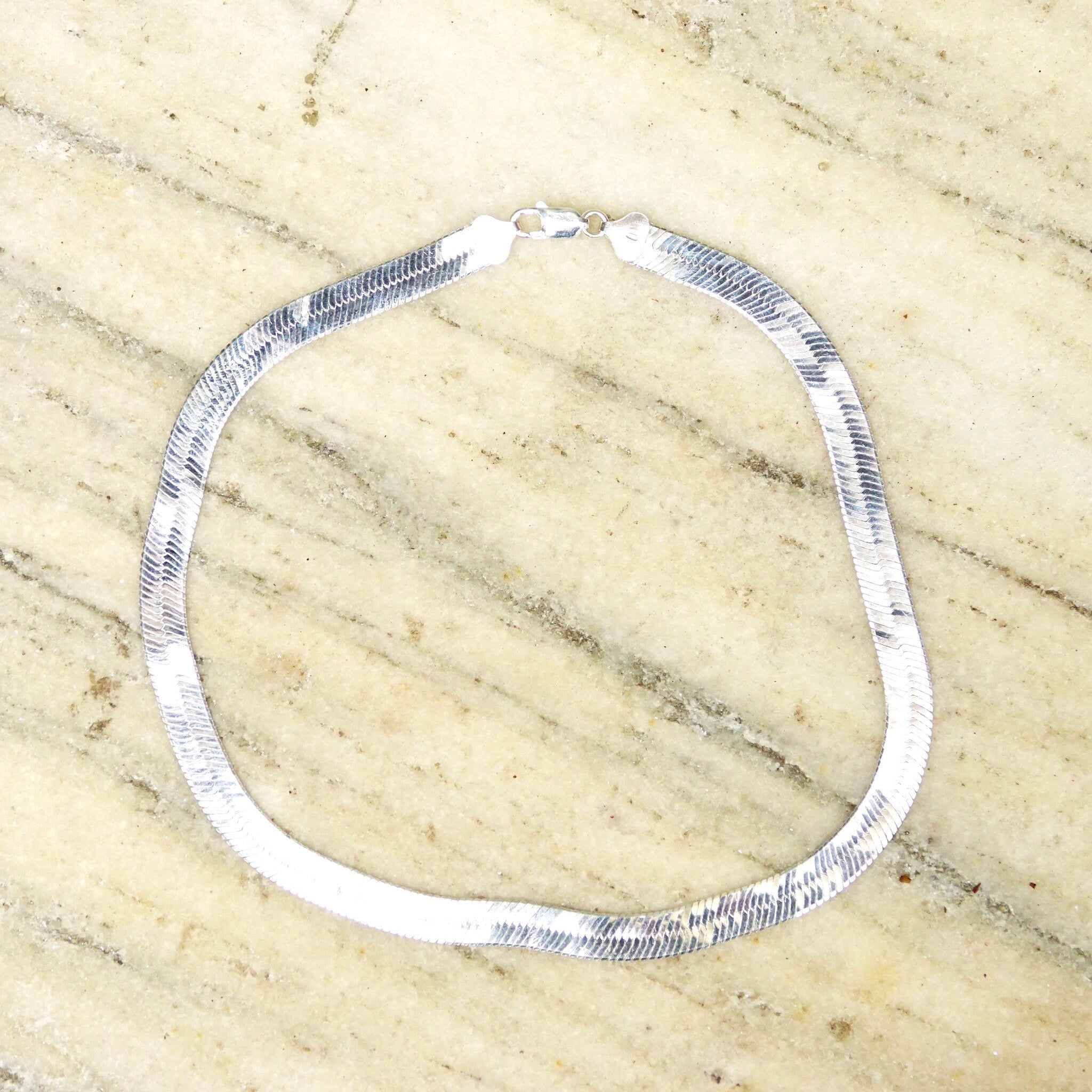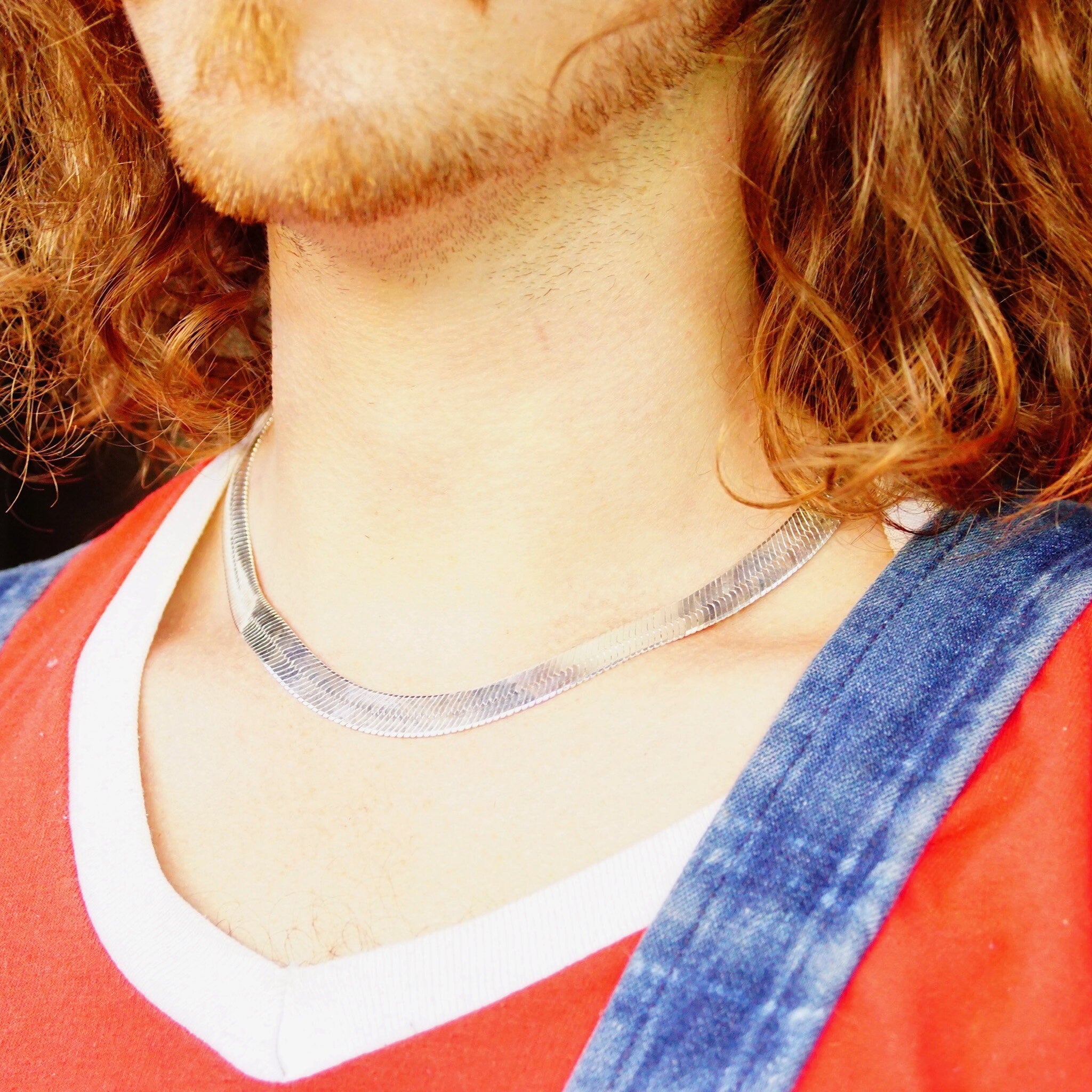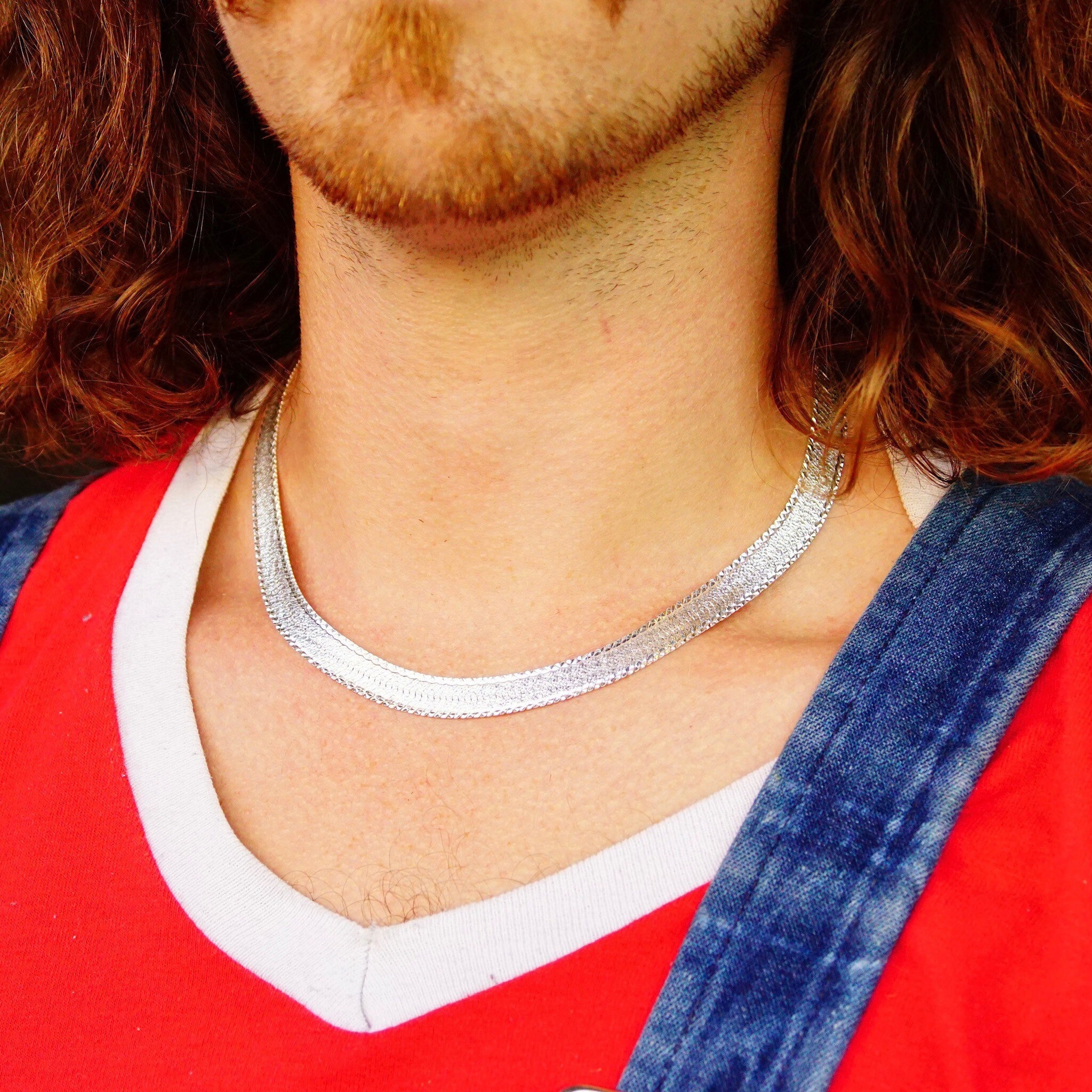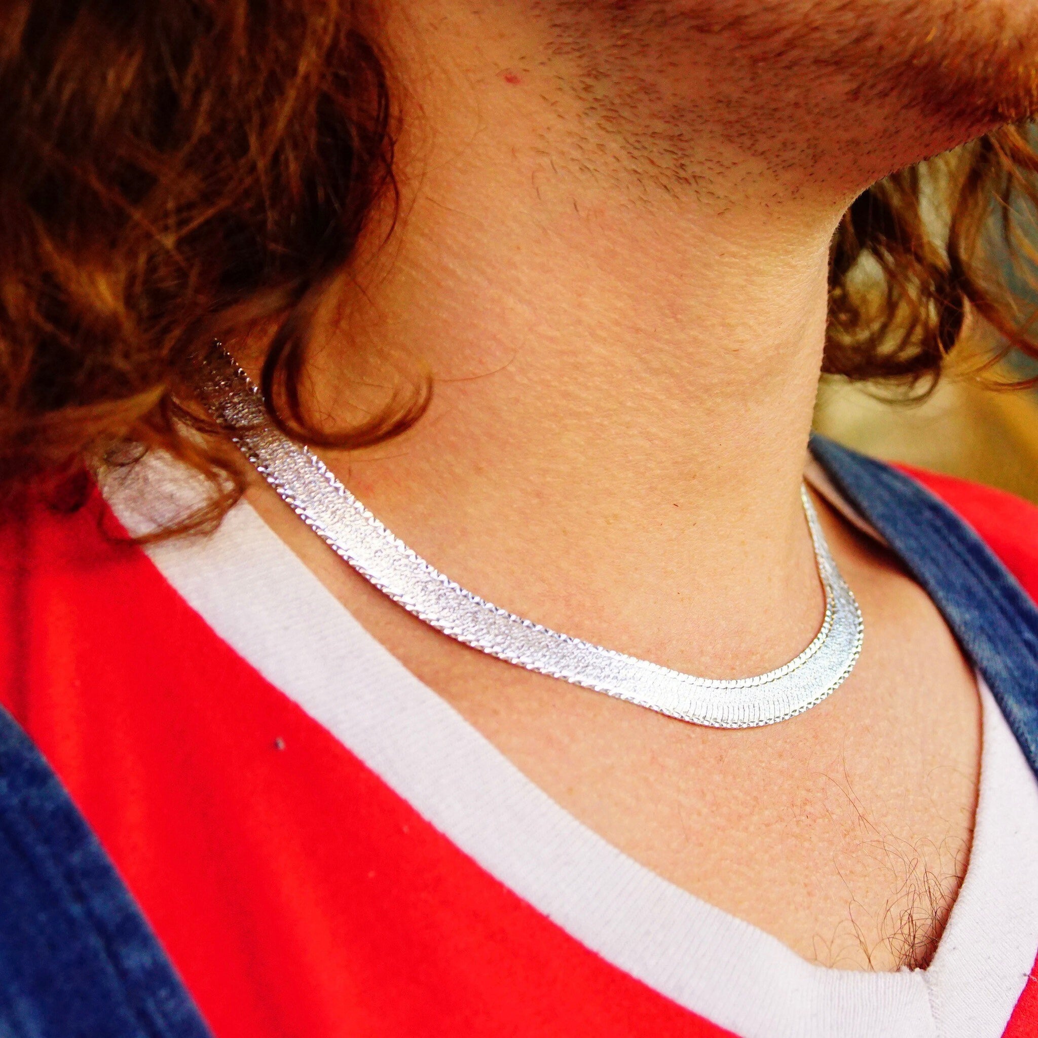 Vintage Milor 925 Italy Herringbone Collar Necklace, 10mm Flat Sterling Silver Herringbone Chain, Hammered Texture On Reverse Side, 18 Long