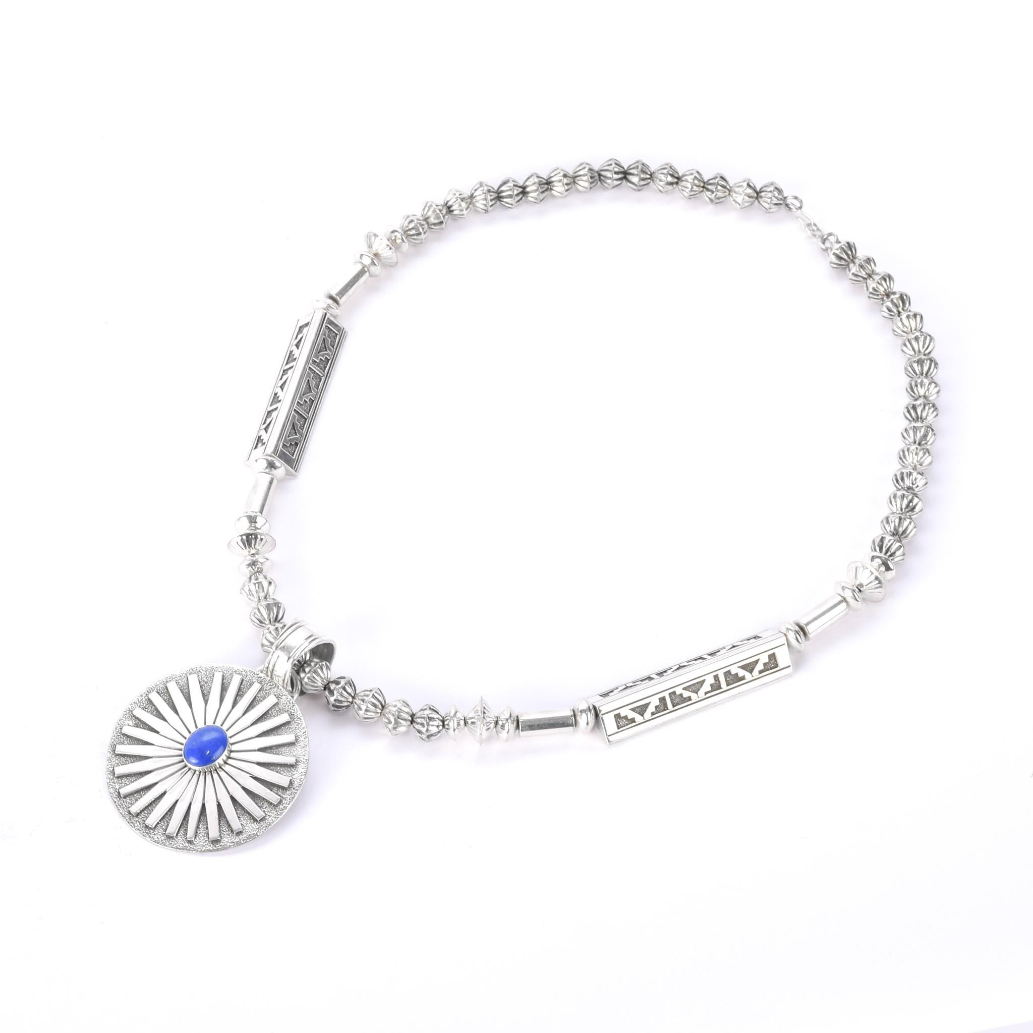 Navajo Signed R. Wiley Sterling Silver Necklace with Lapis Lazuli Pendant