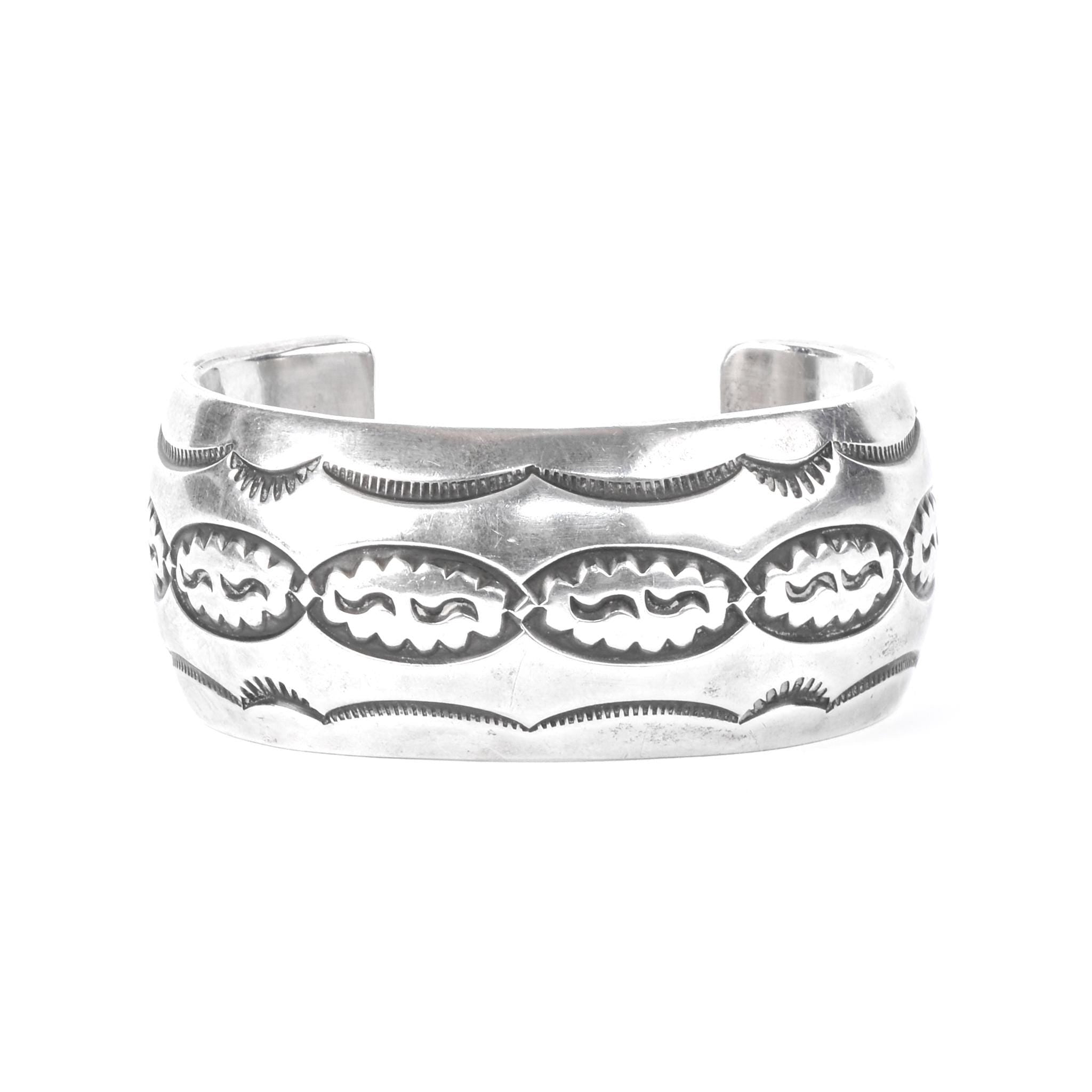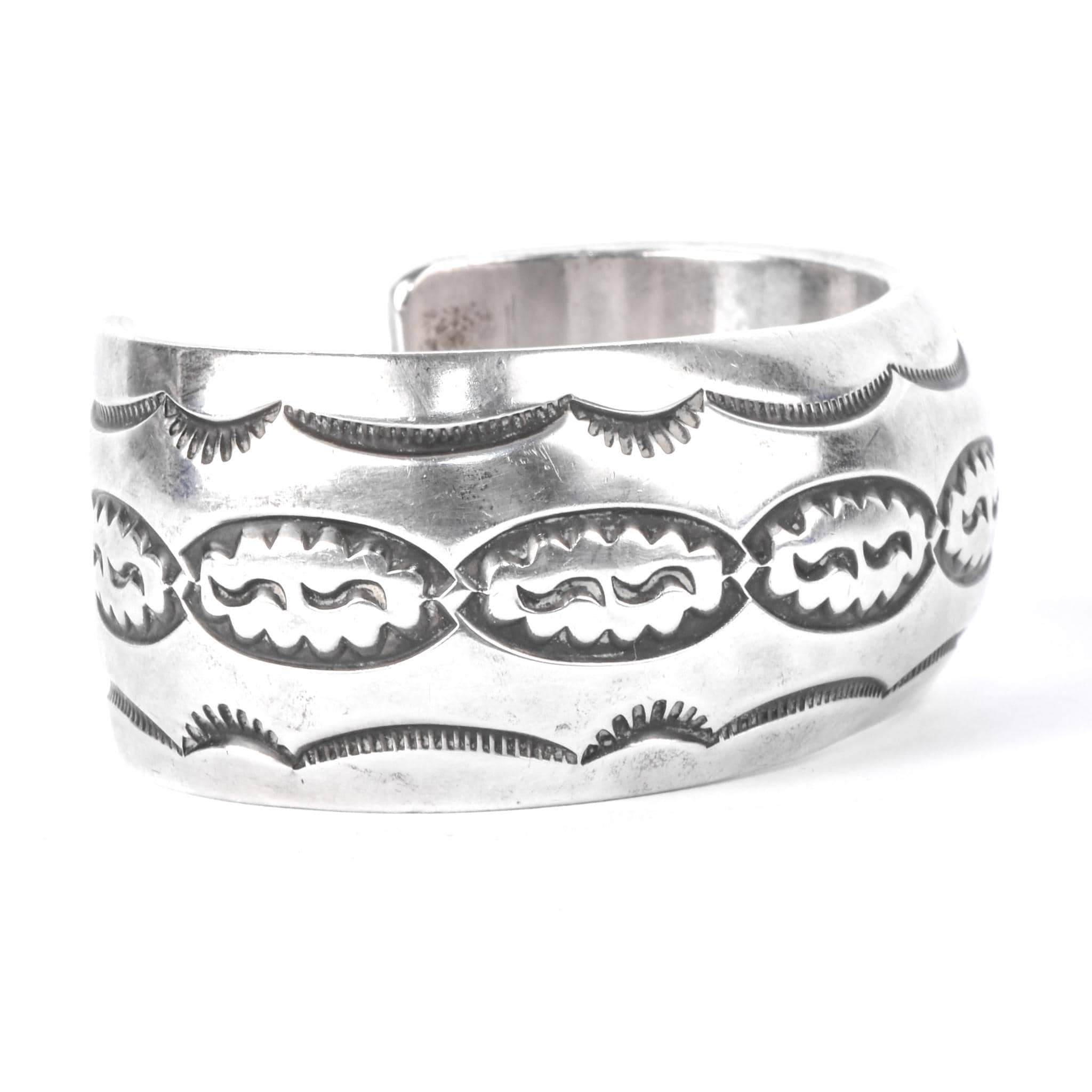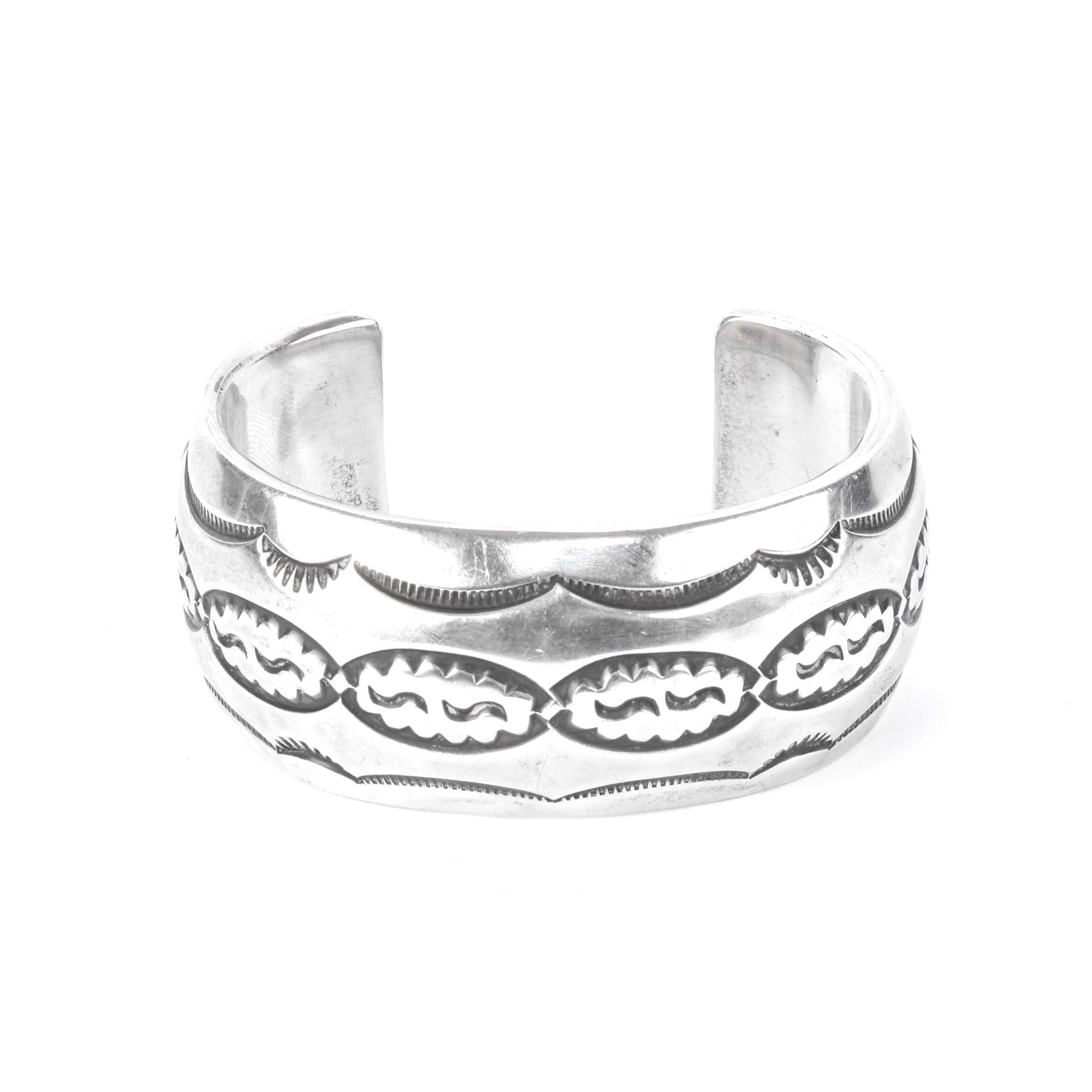 Signed Navajo Sterling Silver Stamped Cuff Bracelet