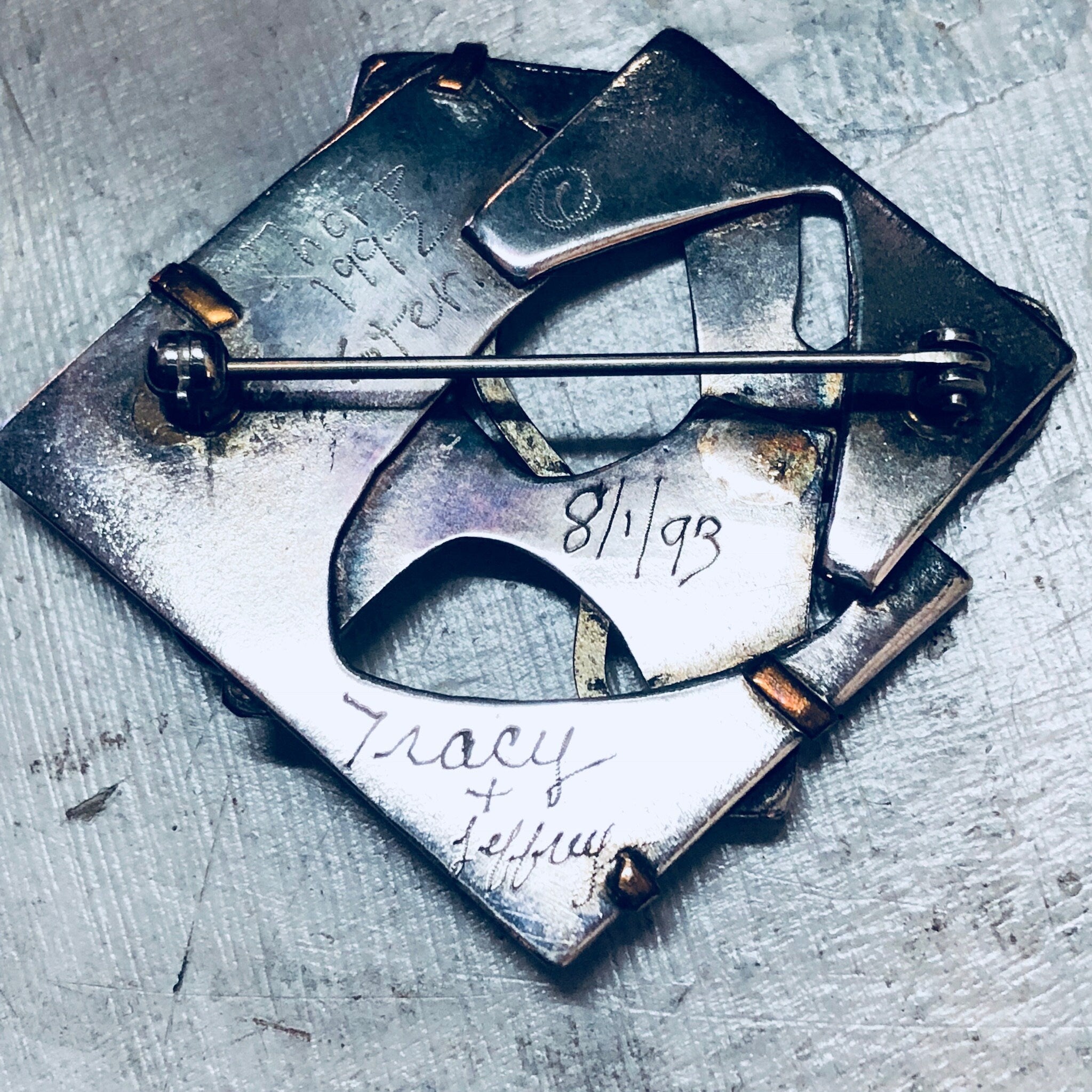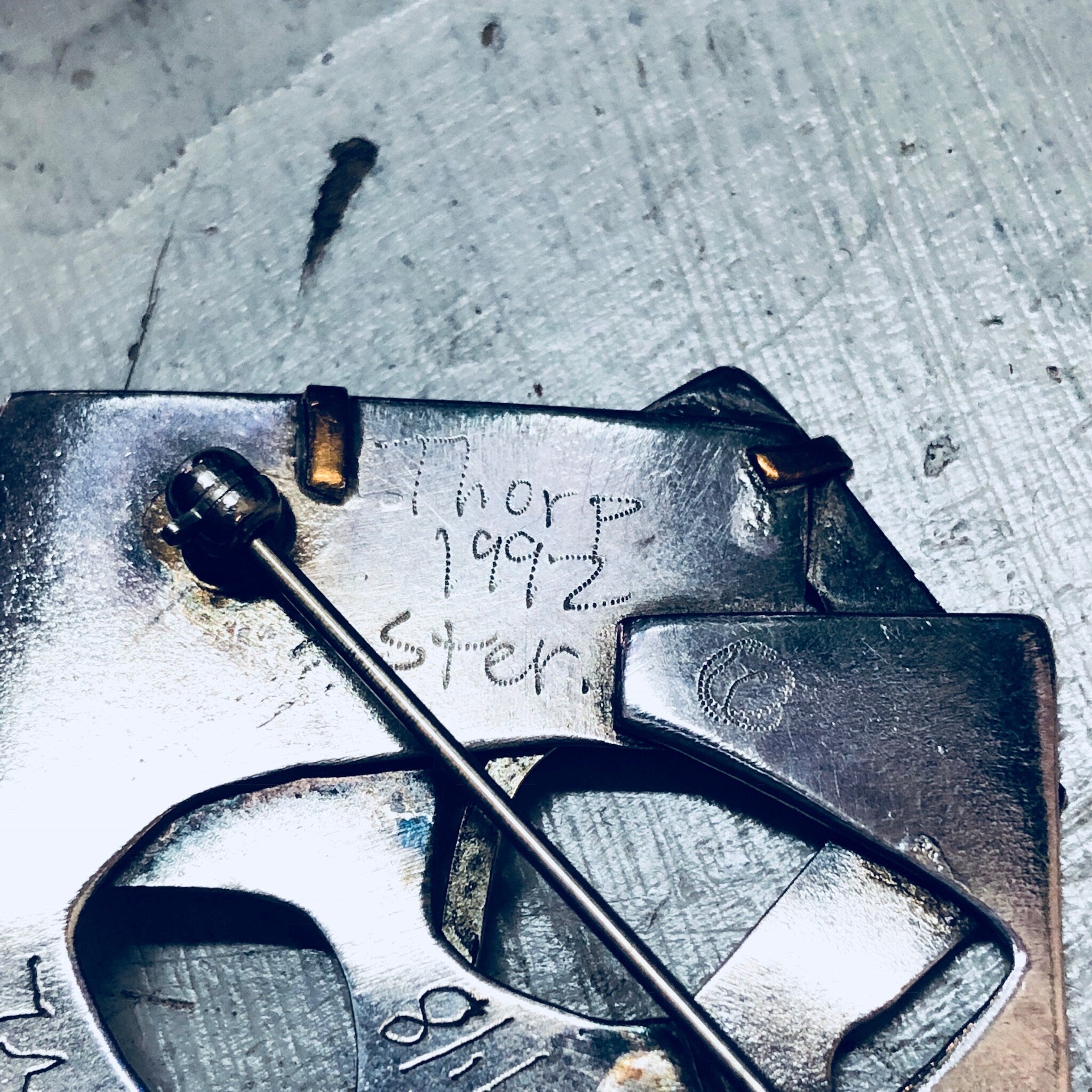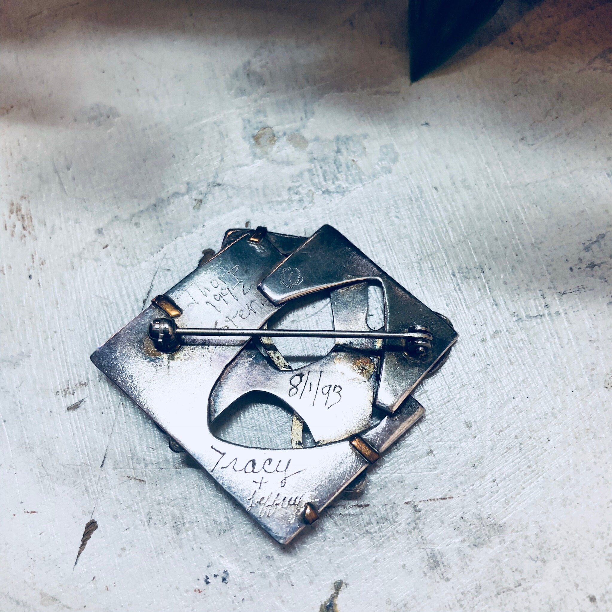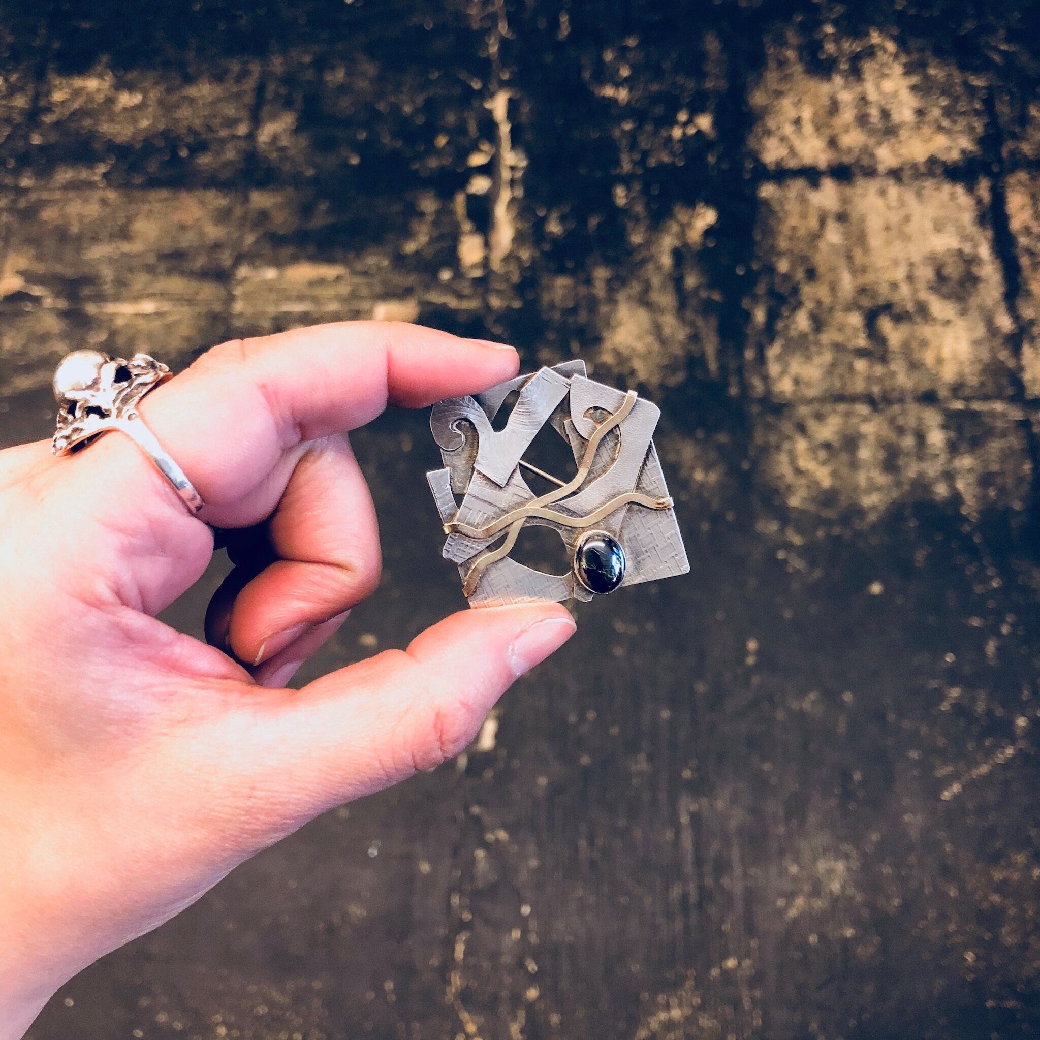 Vintage Silver Brooch, Sterling Silver, Vintage Jewelry, Hematite Jewelry, Hematite Brooch, Cabochon Hematite, Handmade Brooch, Textured Pin