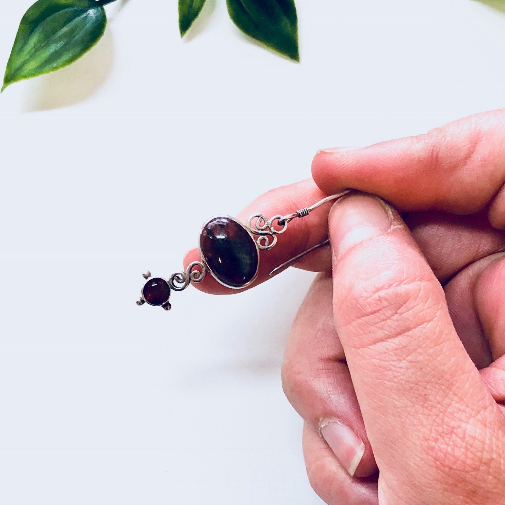 Vintage silver Earrings, Sanjen Earrings, Gemstone Earrings, Red Stones, Dangle Earrings, Drop Earrings, Pierced Ears, Vintage Jewelry, 925