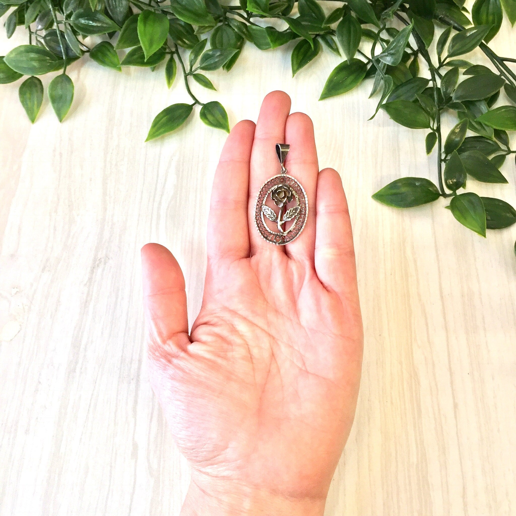 Vintage Silver Pendant | Rose Pendant | Vintage Jewelry | Sterling Silver | Rose Jewelry | Flower | Silver Rose | Vintage Pendant | Necklace