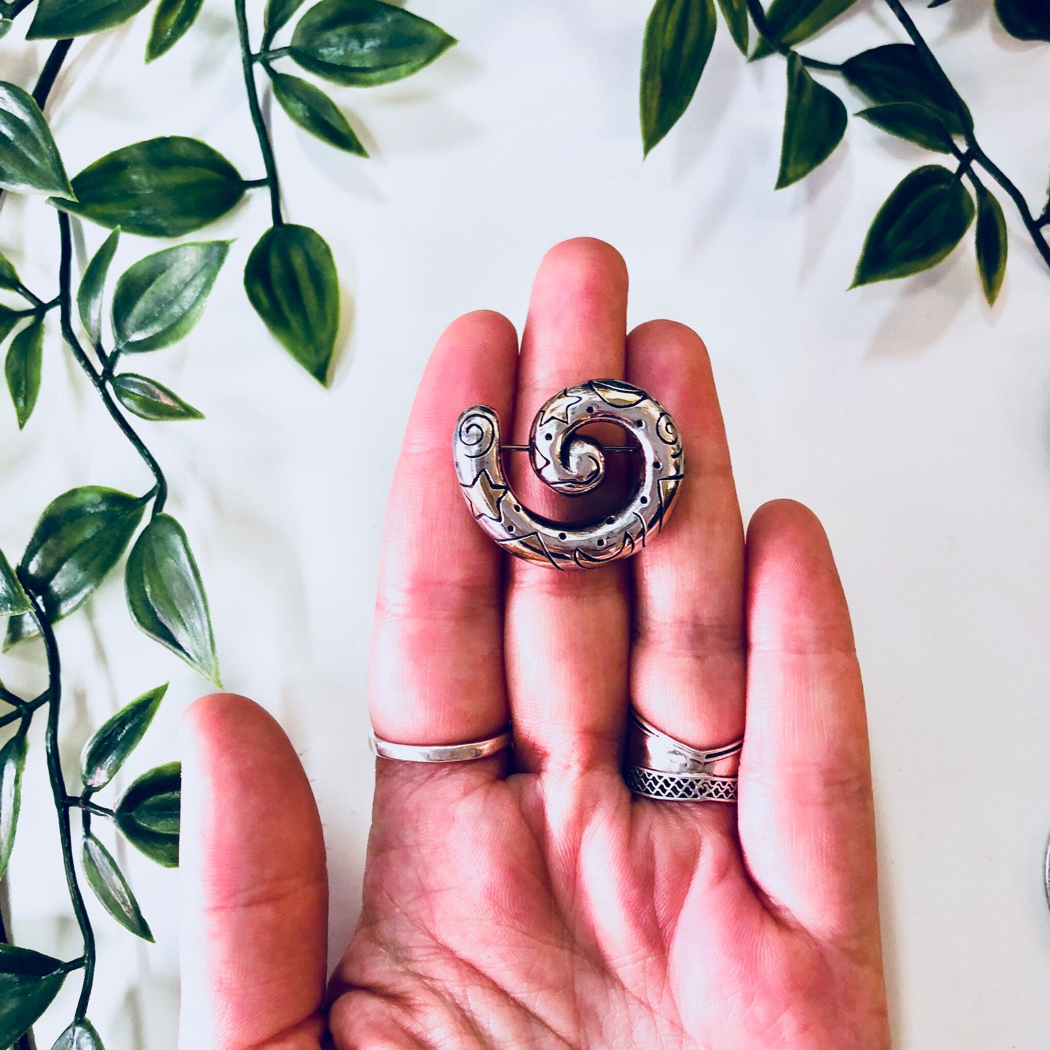 Vintage SilverBrooch, Sterling Silver, Vintage Jewelry, Stars, Moon, Swirl Design, 925, Vintage Pin, Anniversary Gift, Small Brooch, Gold