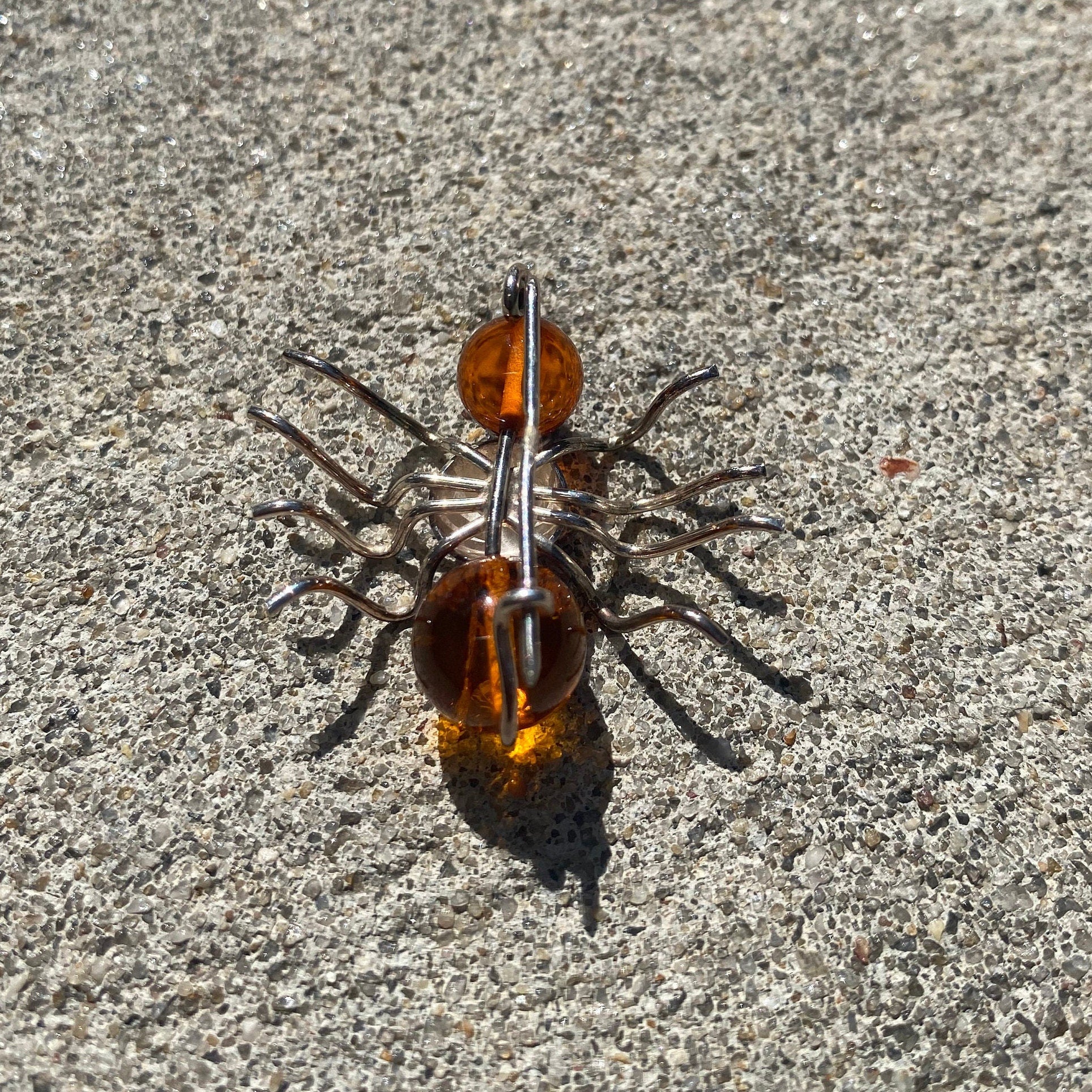 Vintage Sterling Silver Amber Insect Pin, Small Ant/Spider/Bug Brooch, Polished Amber Beads, Cute Jacket Pin, 925 Accessories, 28mm