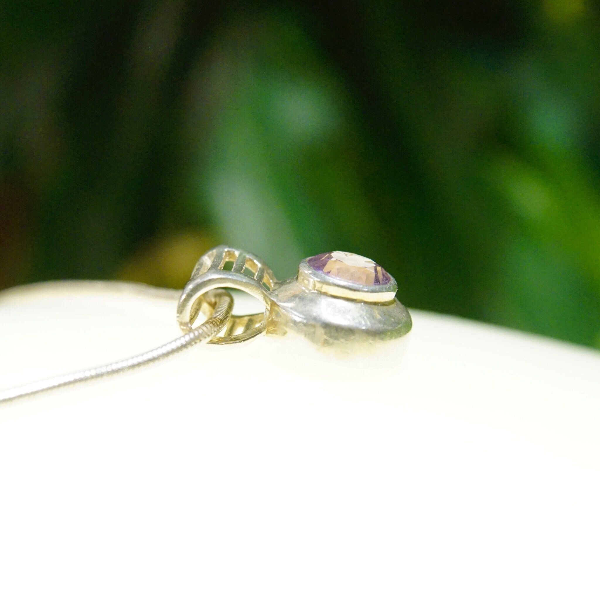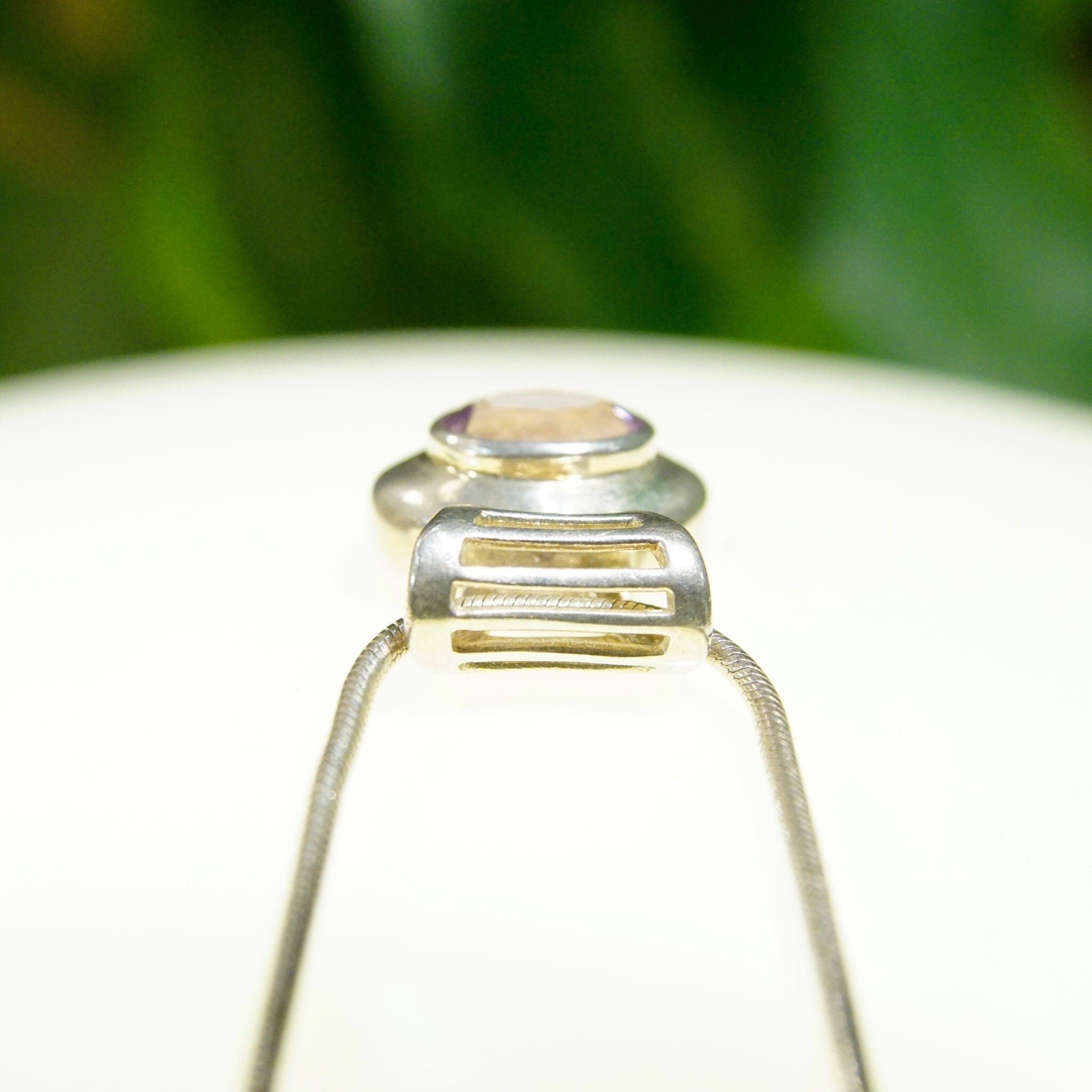 Vintage Sterling Silver Amethyst Pendant Necklace, Fine Snake Chain With Oval Cut Purple Stone Pendant, Synthetic Amethyst, Bocco Jewelry