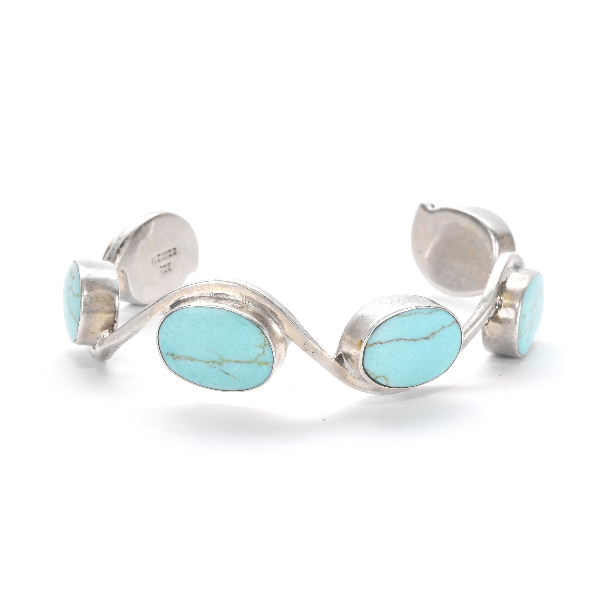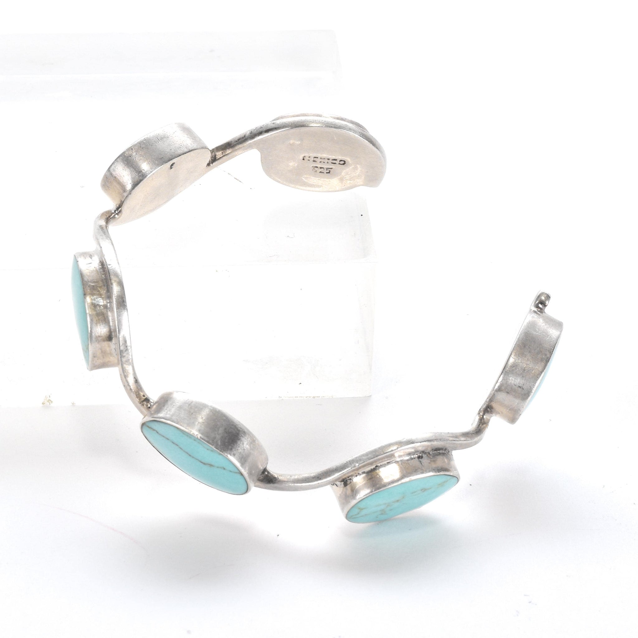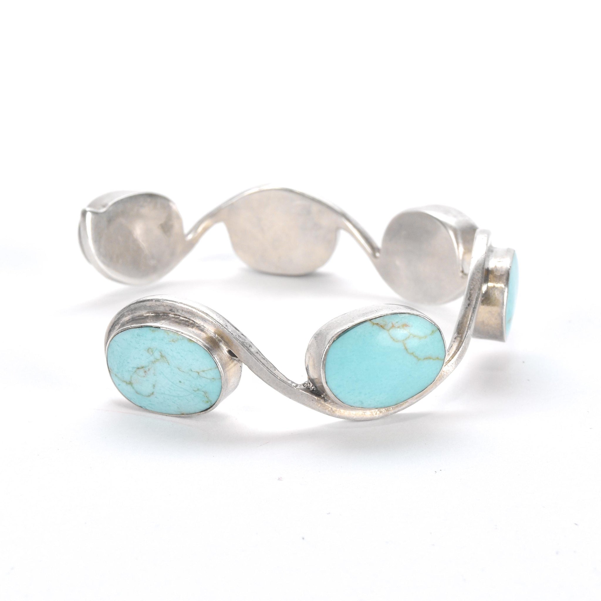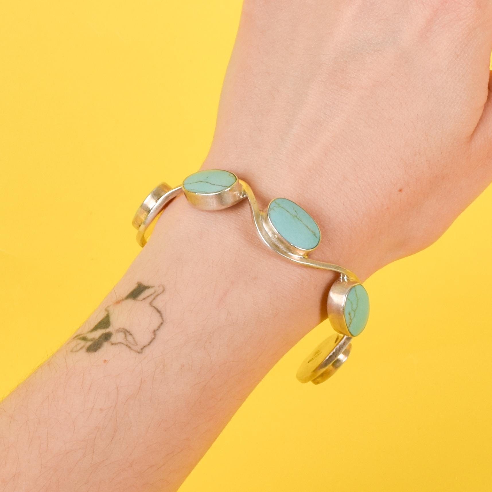 Why we love it: This bracelet is uniquely fashionable. The light blue turquoise is complemented perfectly by the sterling silver wave link design.