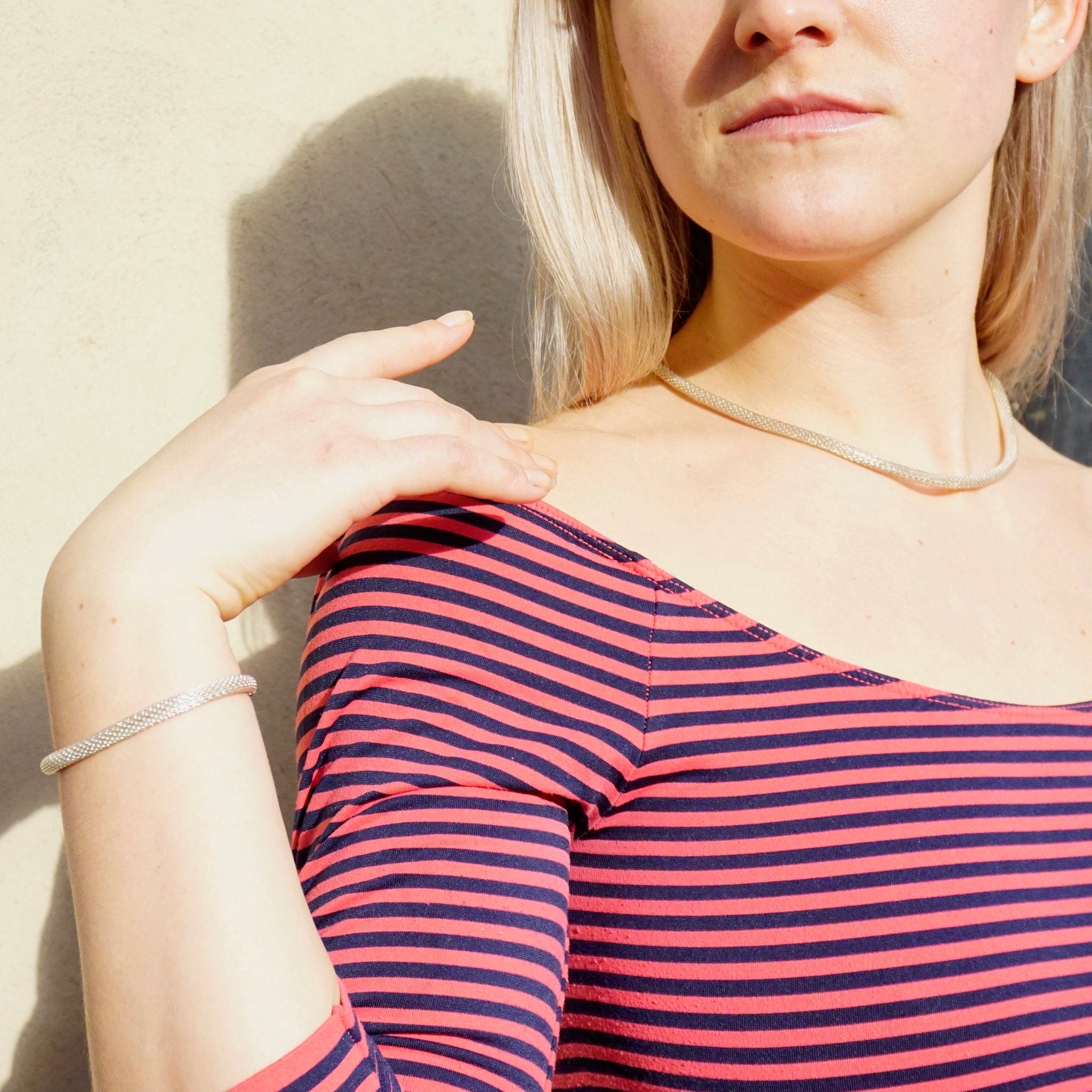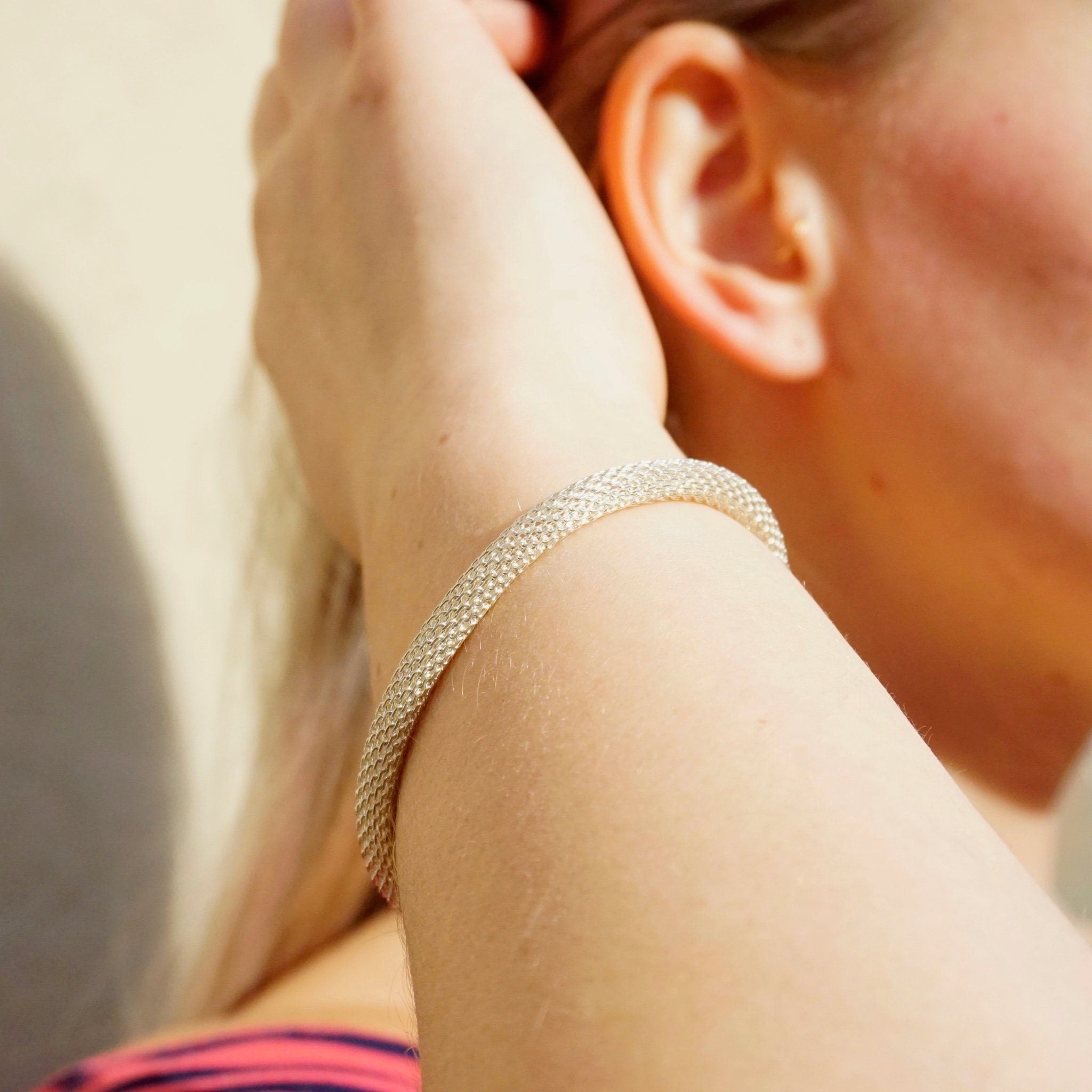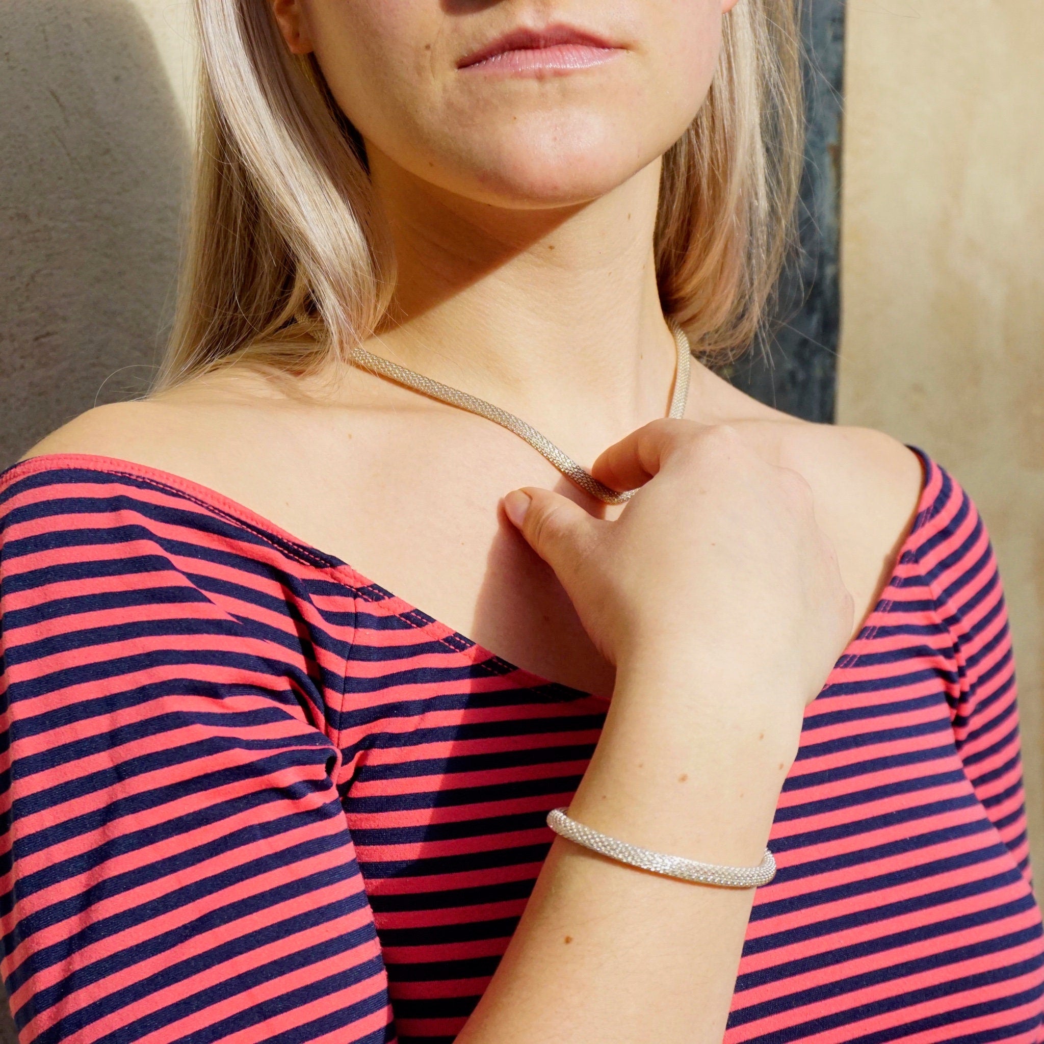 Vintage Sterling Silver Necklace And Bracelet, Hollow Mesh Chain Jewelry, Matching Silver Bracelet And Necklace Made In Italy, 925 Jewelry