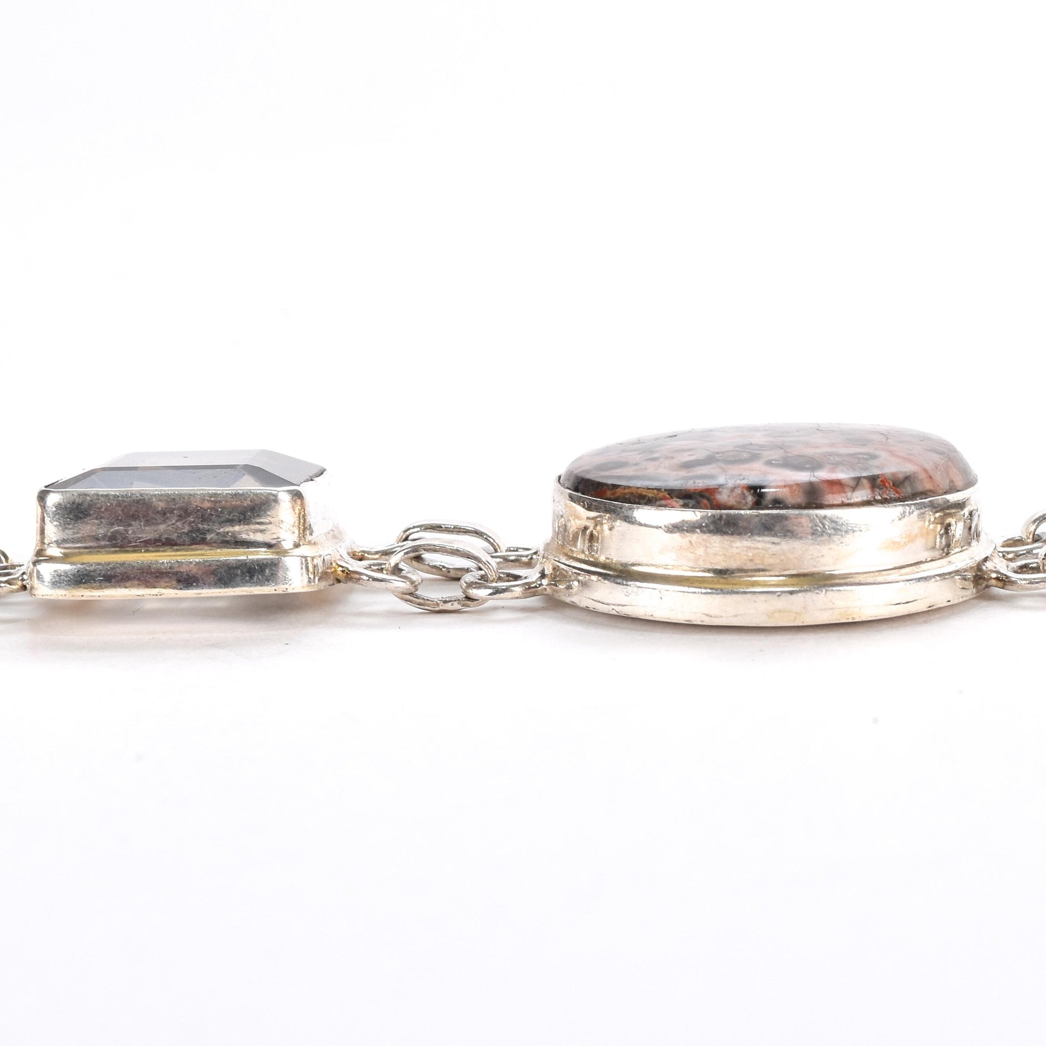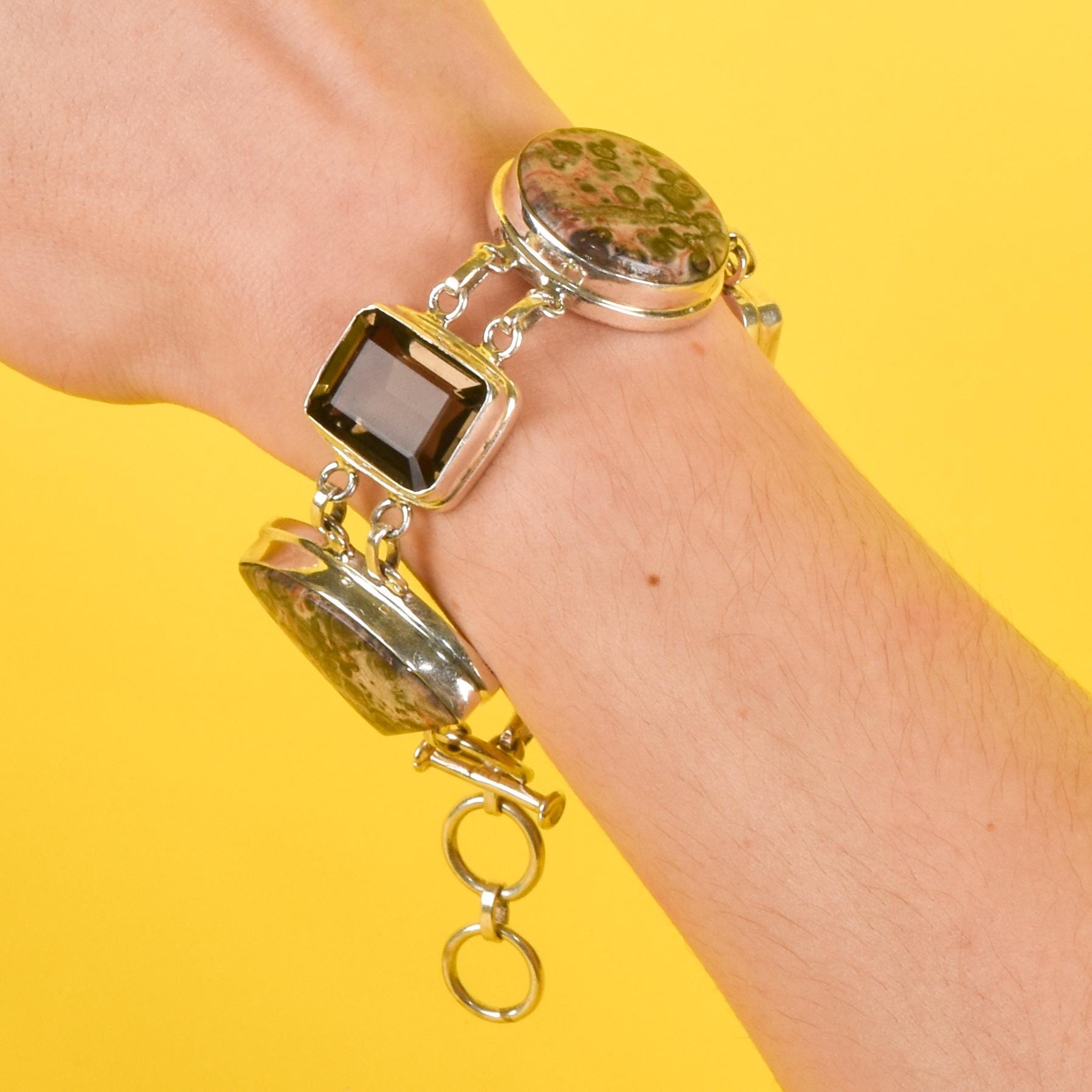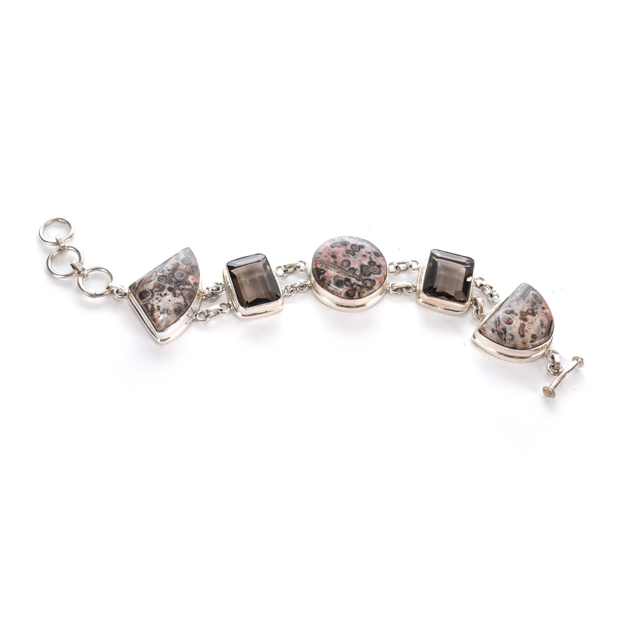 Sterling Rainforest Jasper and Smoky Quartz Link Bracelet