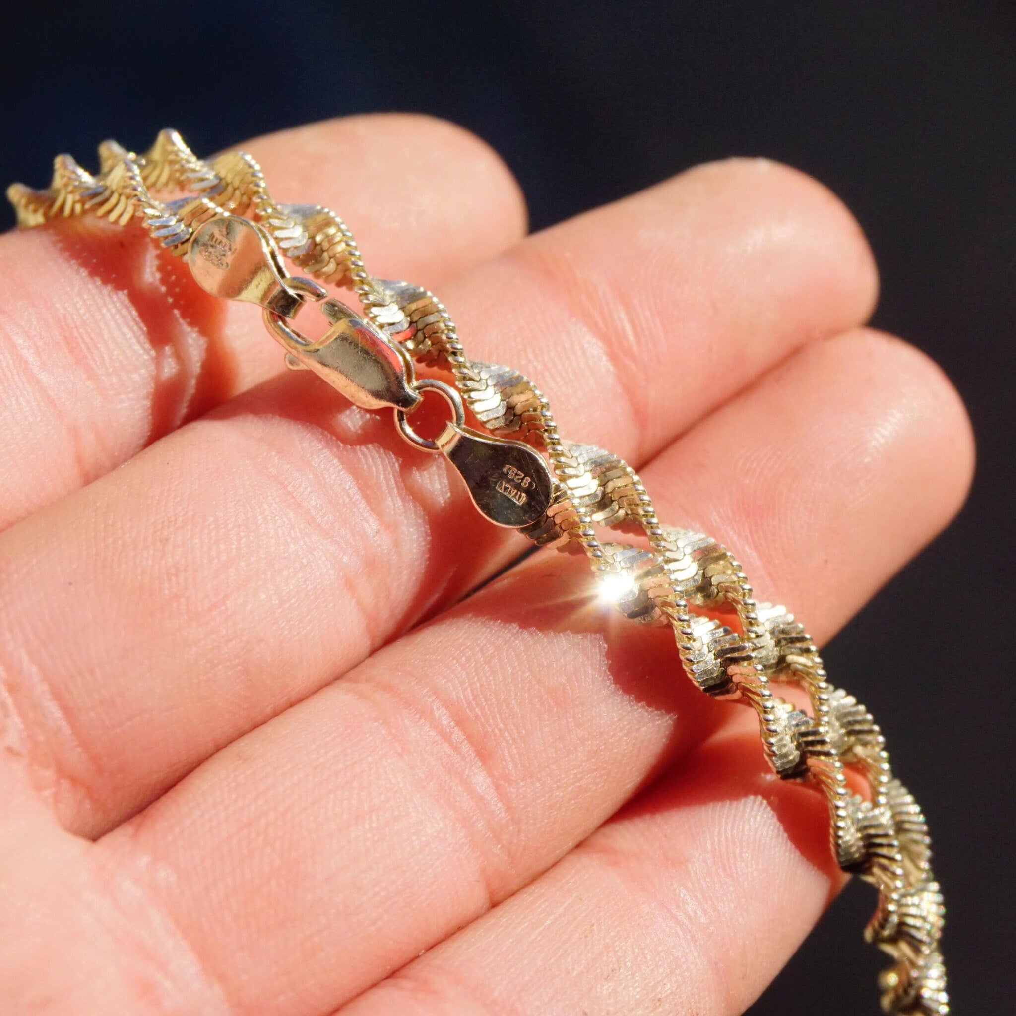 Vintage Sterling Silver Twisted Rope Chain Necklace, Beautiful Italian Silver Chain Necklace, 18 Inch Twisted Rope Chain, PREX Italy 925