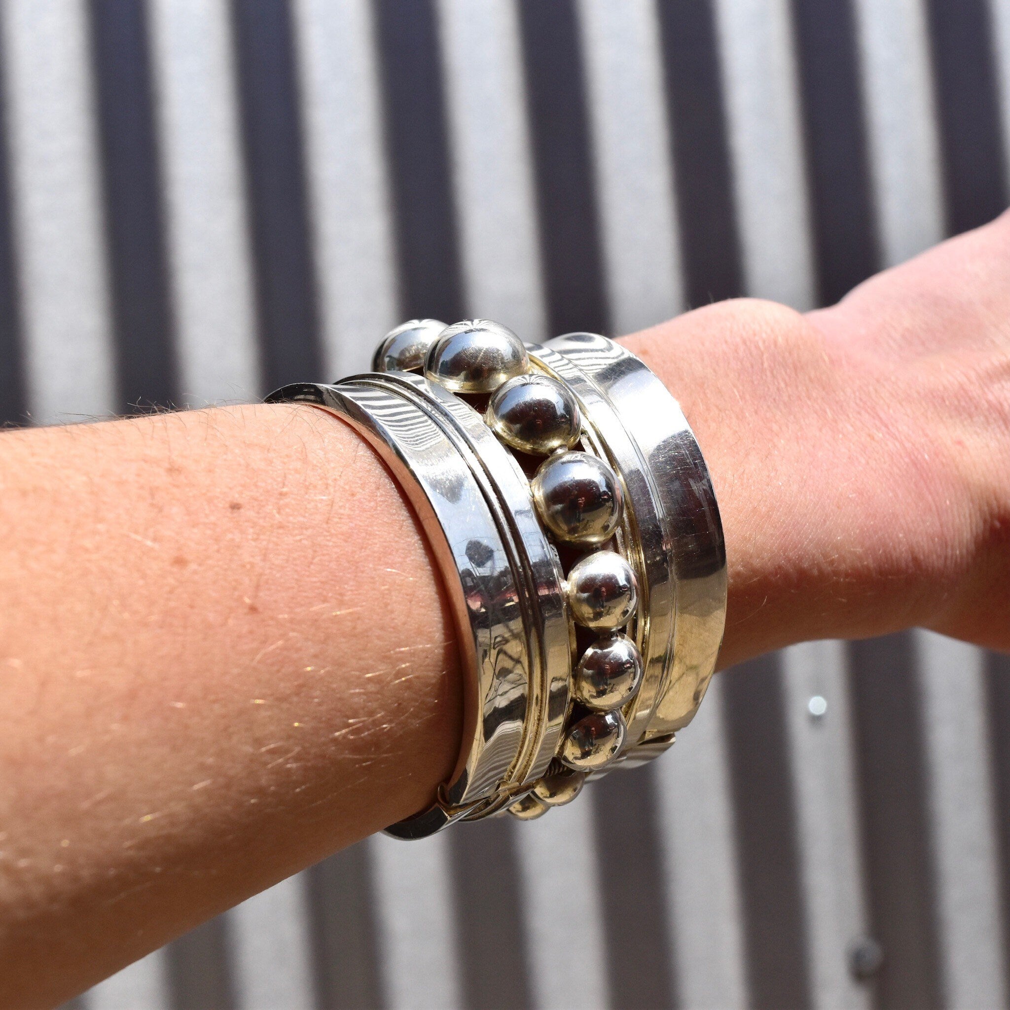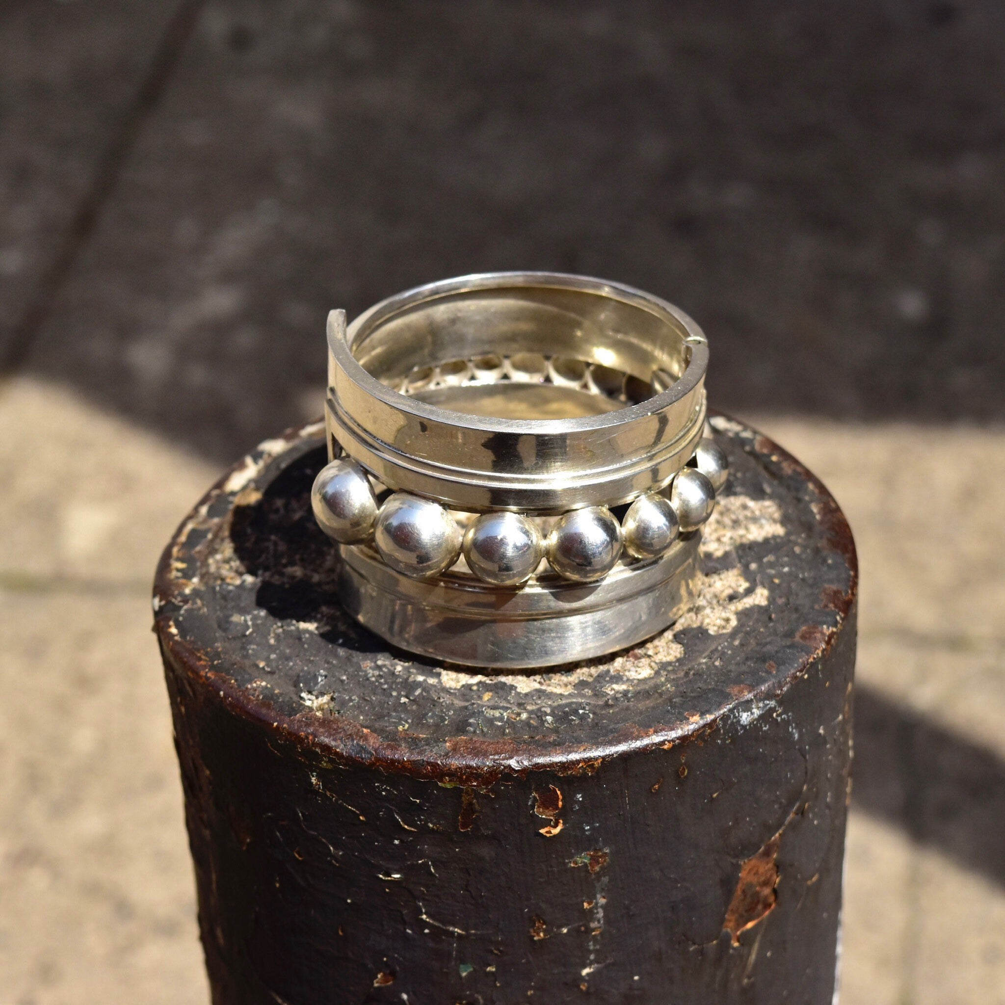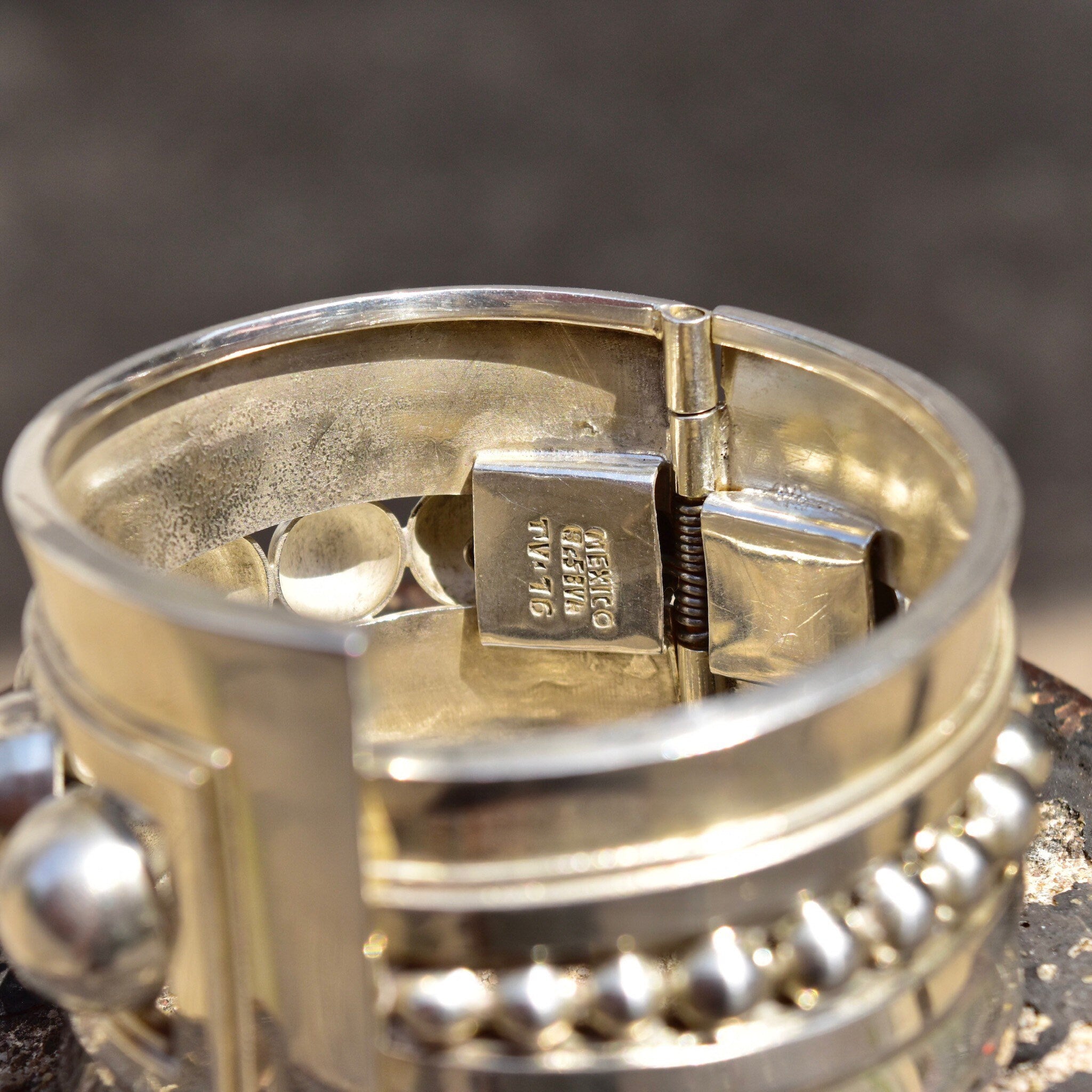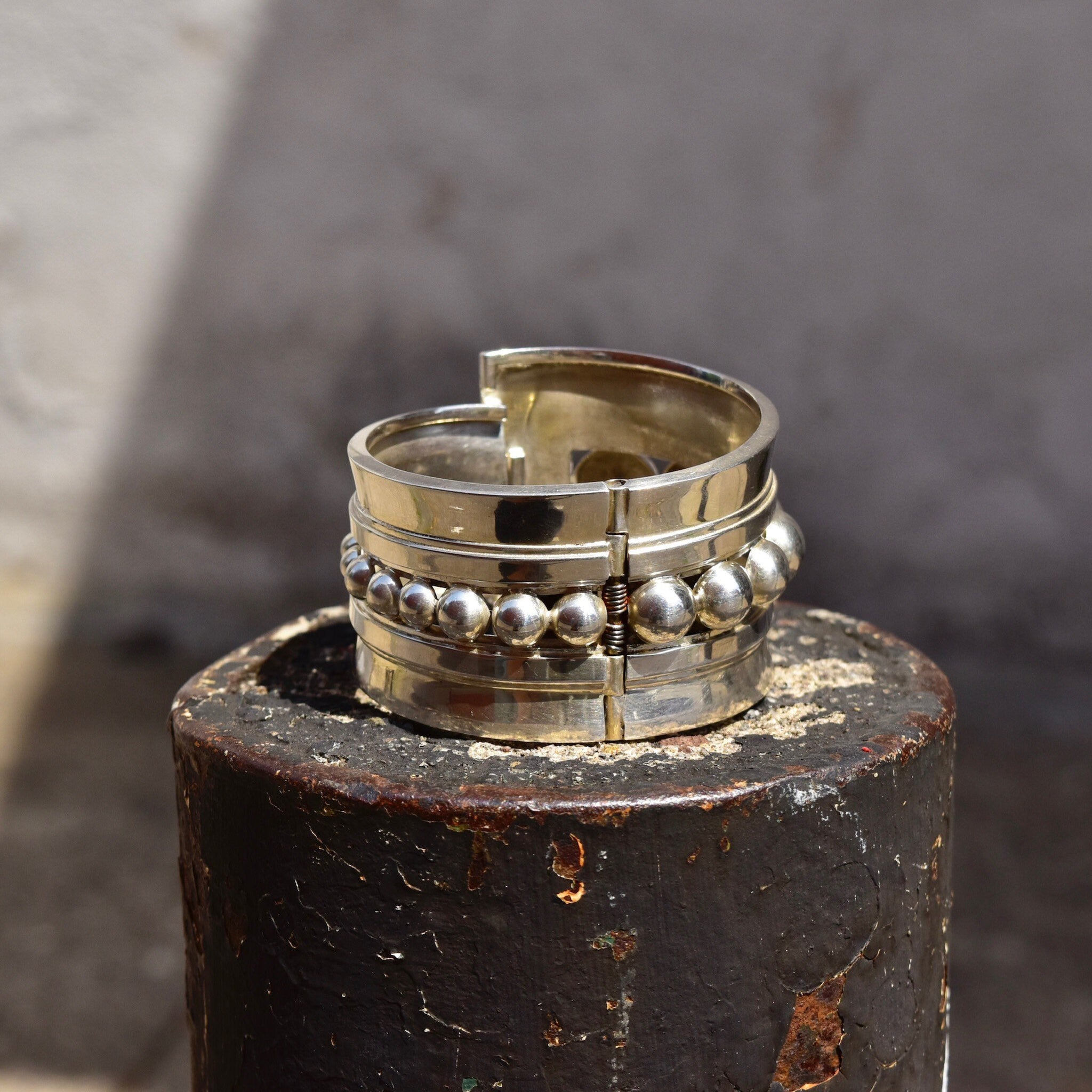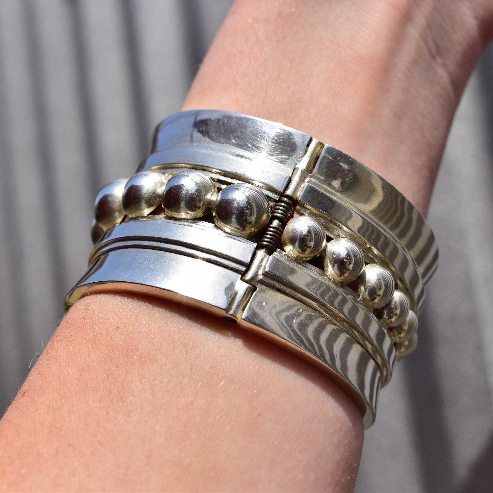 Vintage TAXCO Asymmetric Sterling Silver Clamper Cuff, Graduated Sphere Embellished Cuff, 925 Mexico TV-70, Alfred Villasana, 6 3/4" L