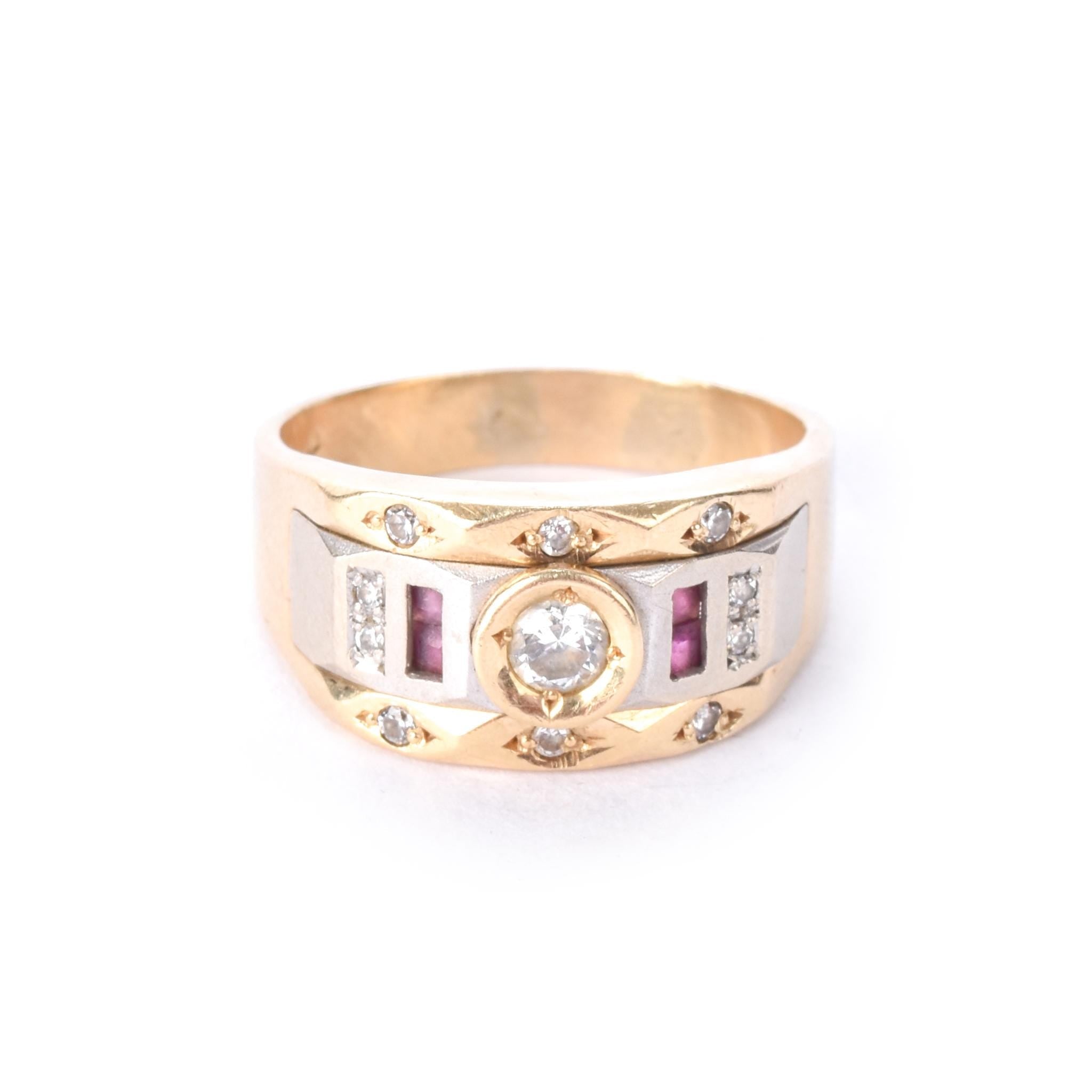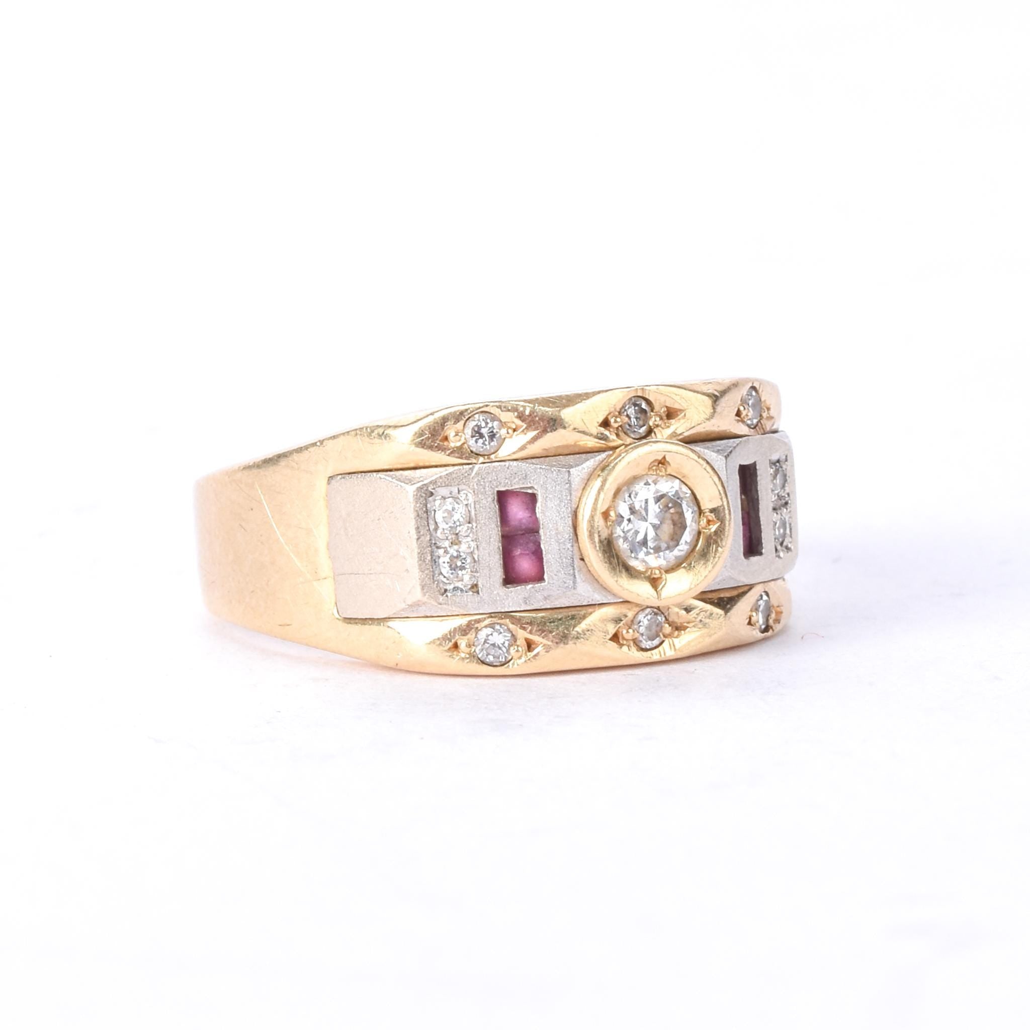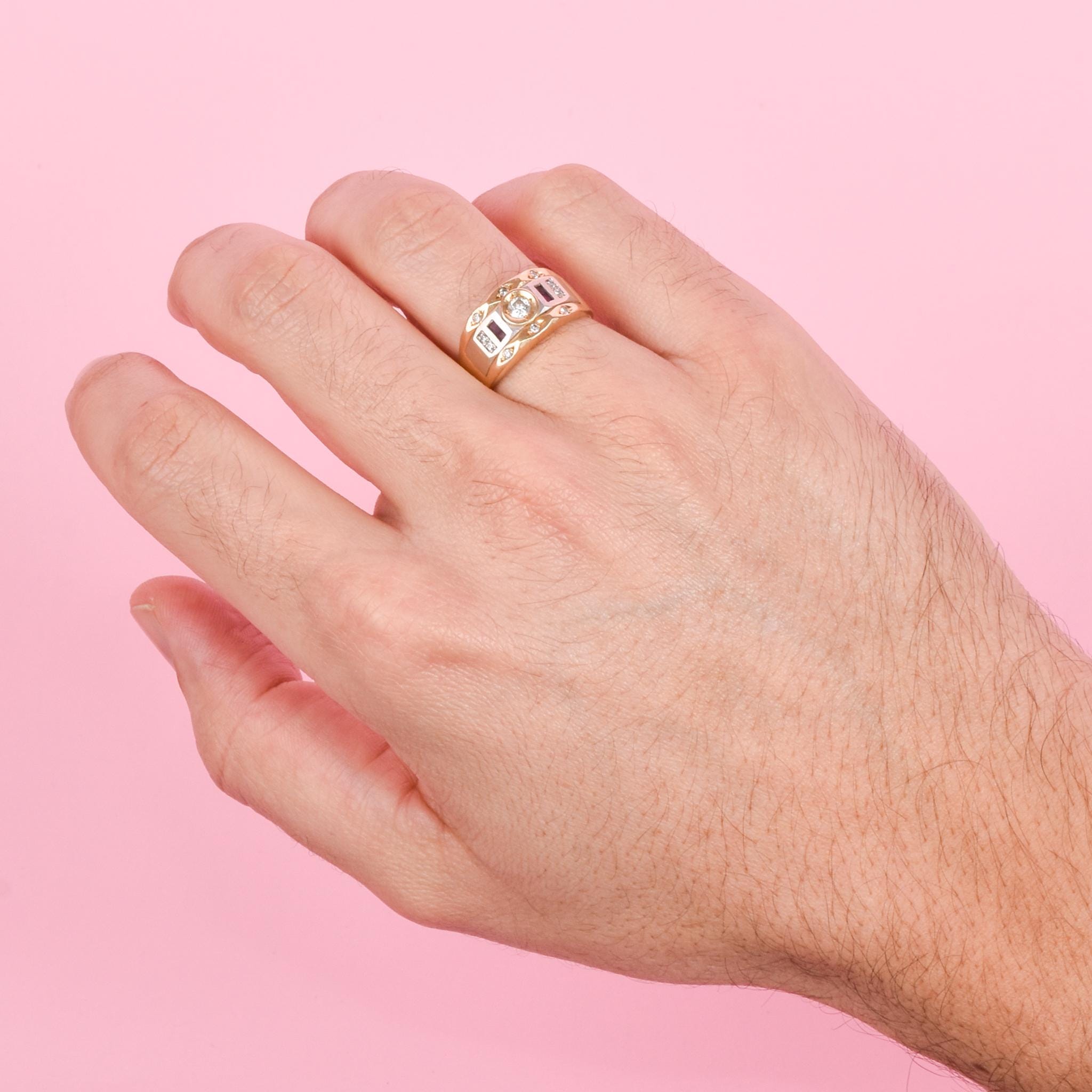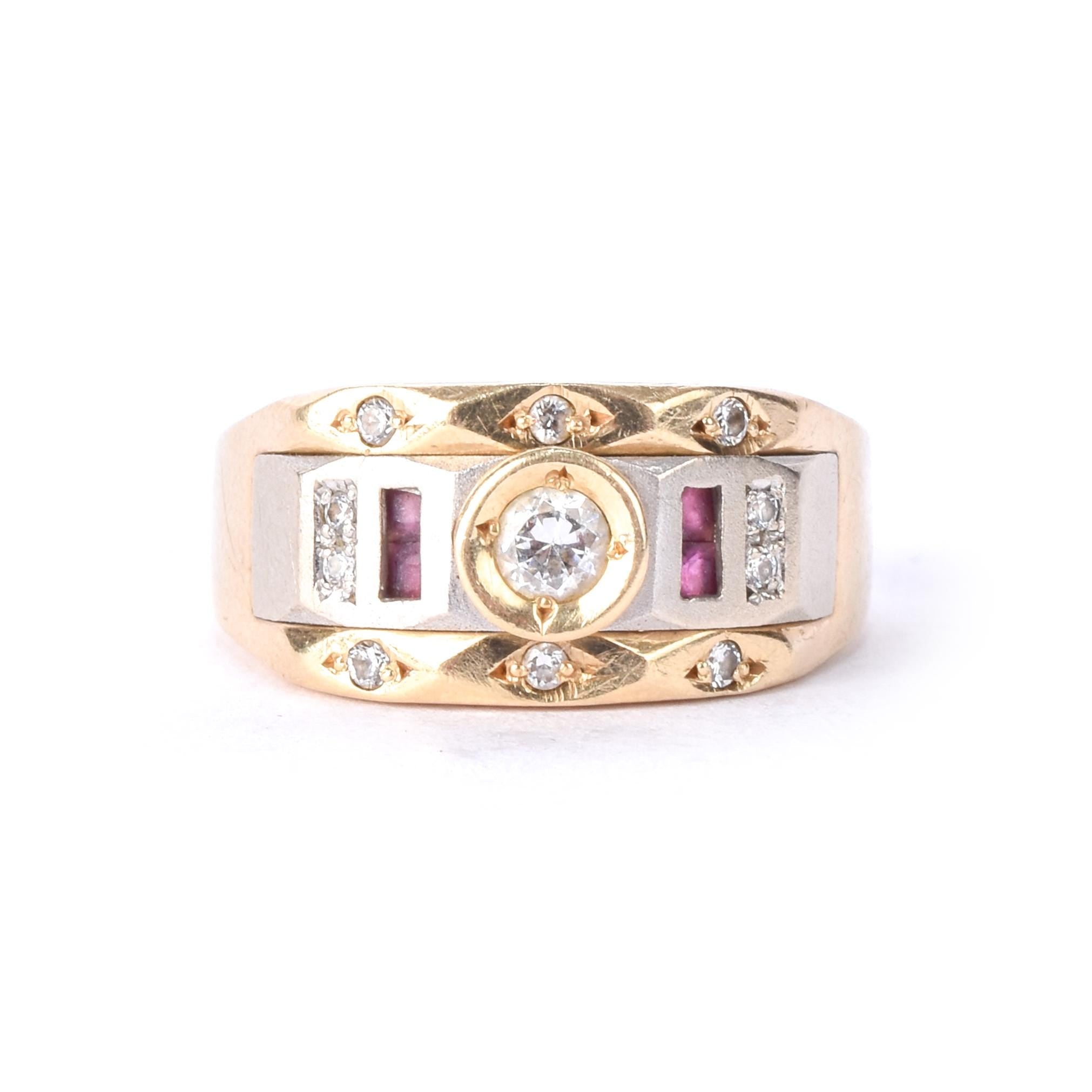 14K Two-Tone Gold Men's Statement Ring with Ruby and Cubic Zirconia
